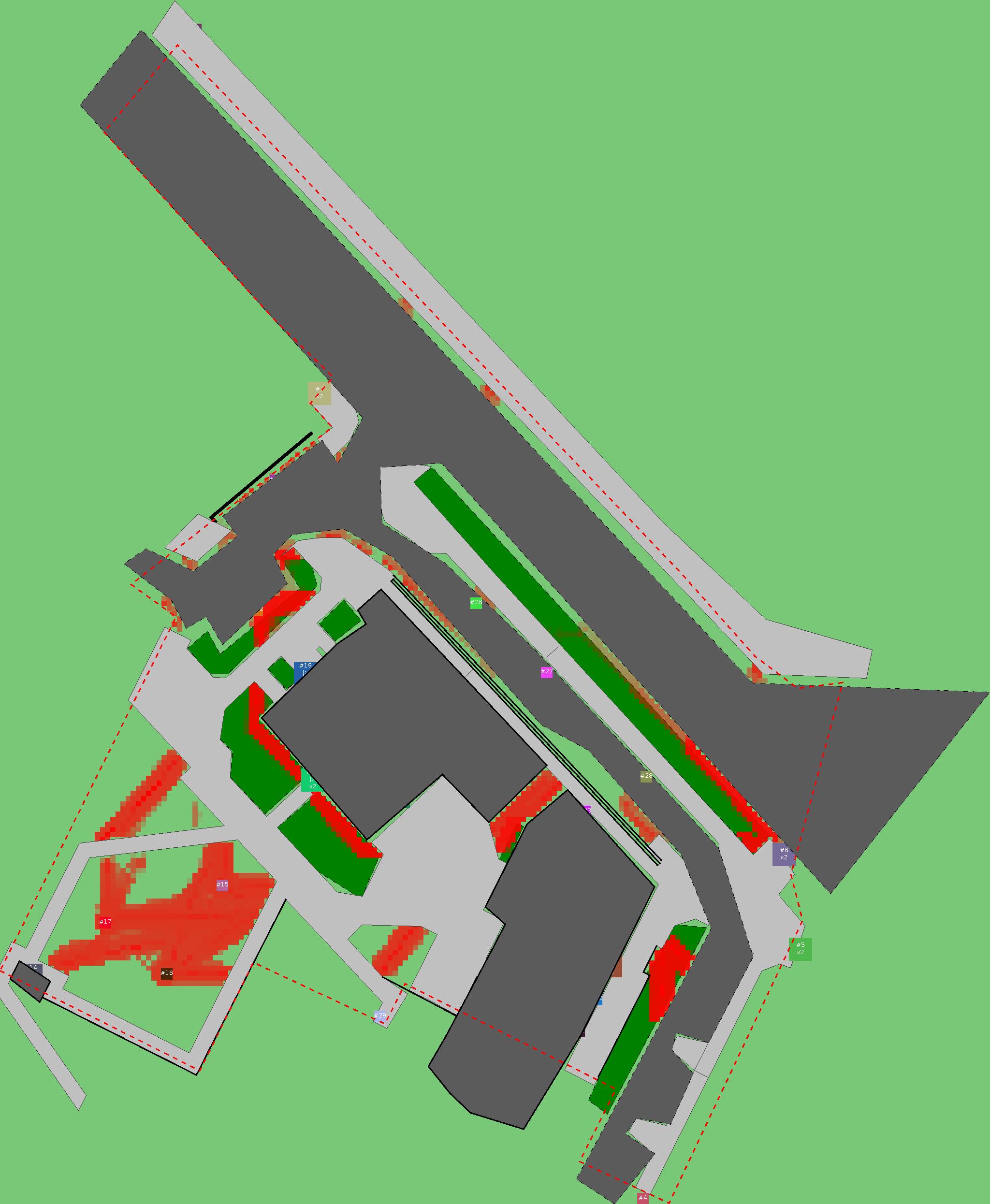 Красным цветом показаны места, где, вероятнее всего, появятся стихийные тропы..