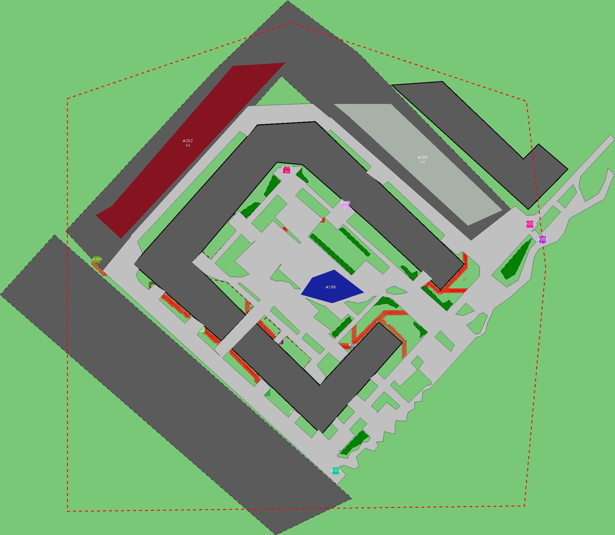 Красным цветом показаны места, где, вероятнее всего, появятся стихийные тропы..