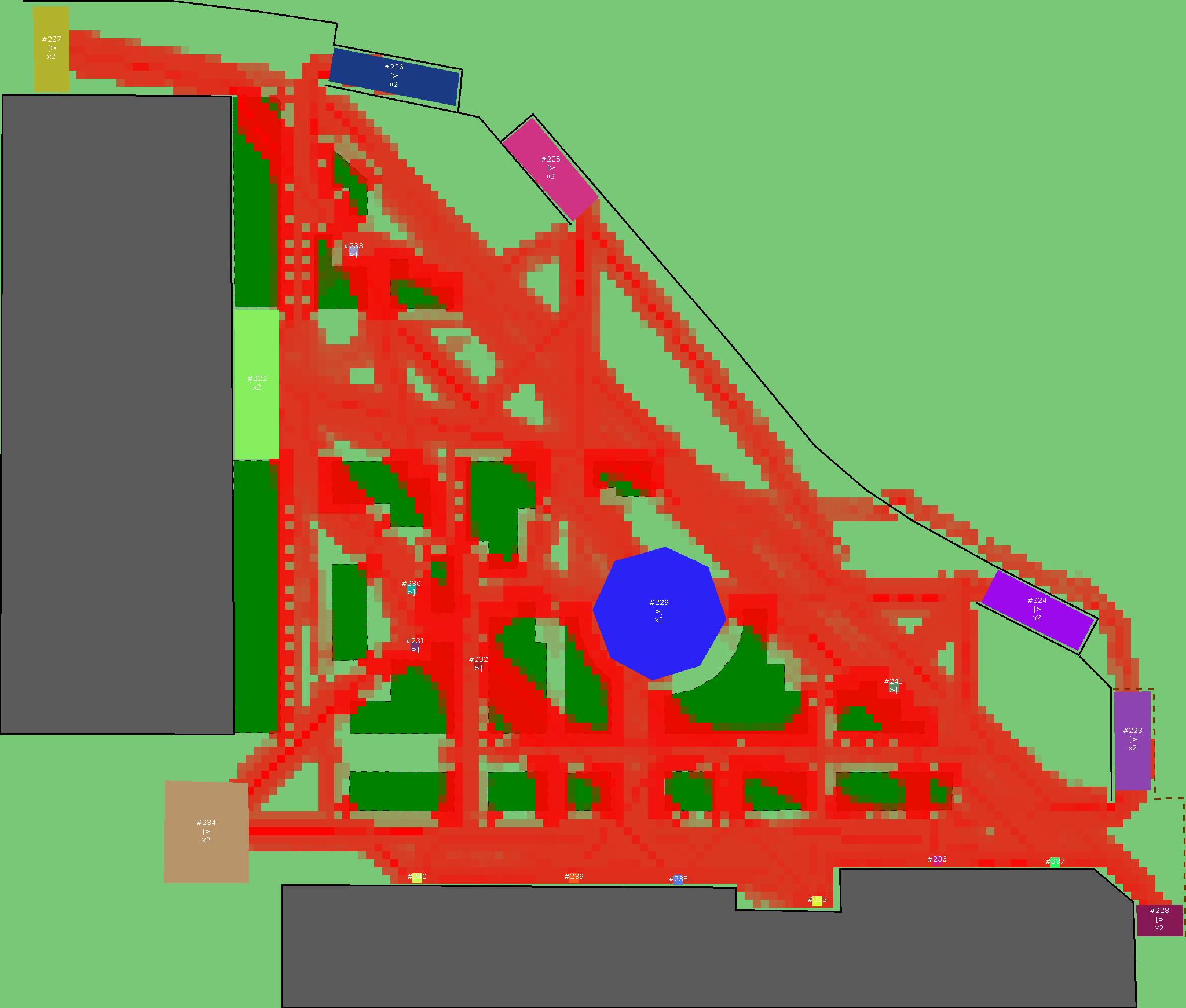 Красным цветом показаны места, где, вероятнее всего, появятся стихийные тропы..