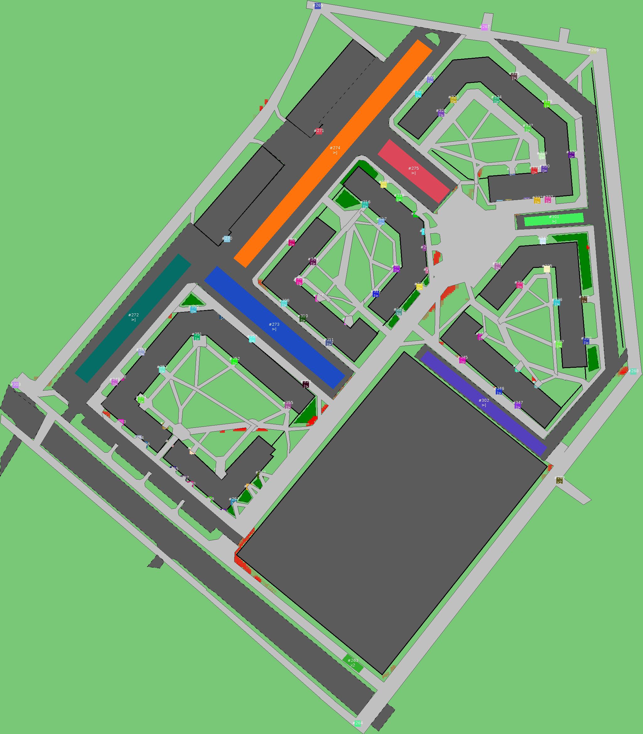 Красным цветом показаны места, где, вероятнее всего, появятся стихийные тропы..