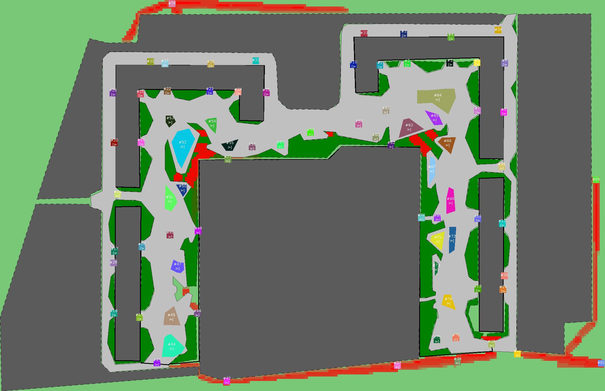 Красным цветом показаны места, где, вероятнее всего, появятся стихийные тропы..