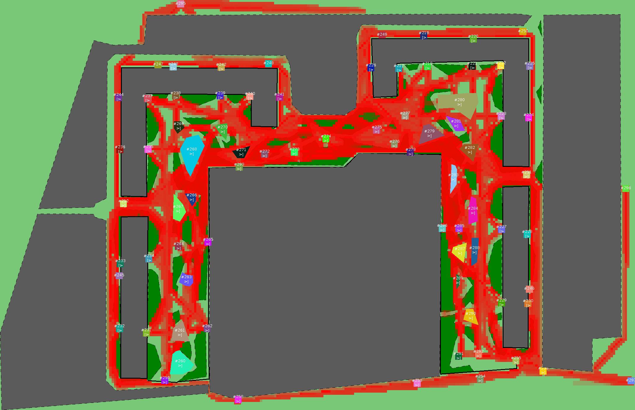 Красным цветом показаны места, где, вероятнее всего, появятся стихийные тропы..