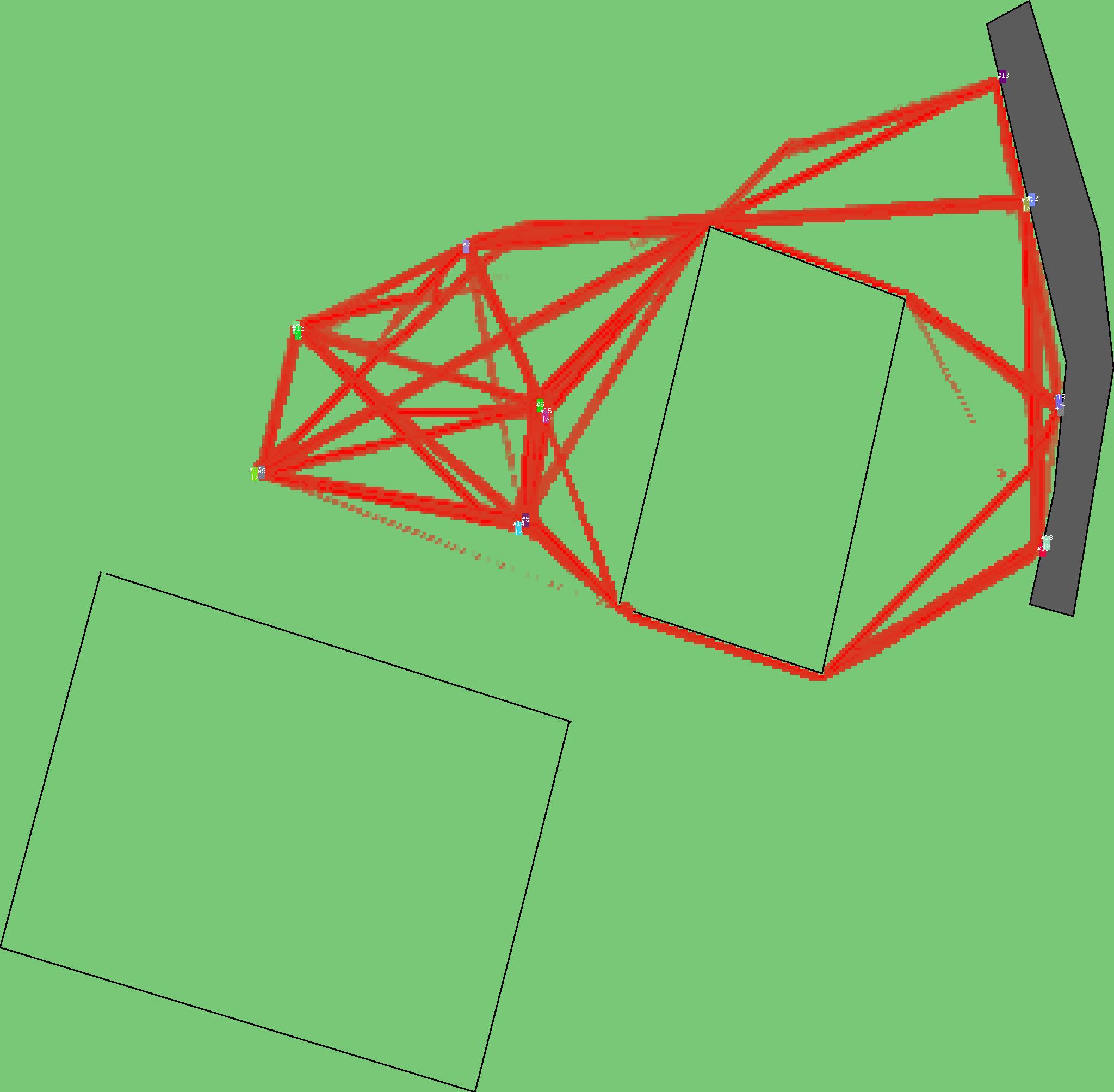 Красным цветом показаны места, где, вероятнее всего, появятся стихийные тропы..