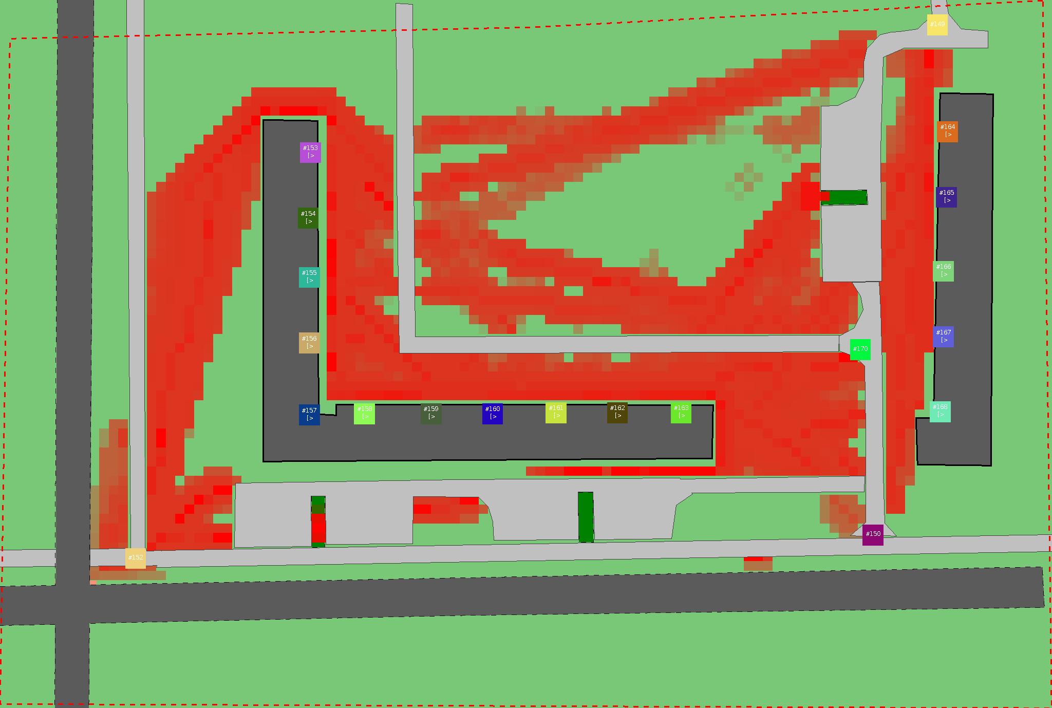 Красным цветом показаны места, где, вероятнее всего, появятся стихийные тропы..