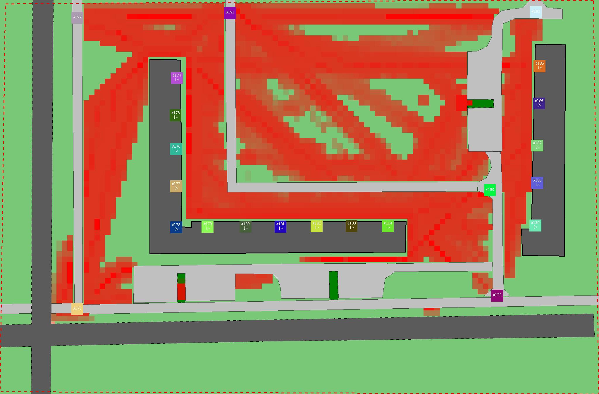 Красным цветом показаны места, где, вероятнее всего, появятся стихийные тропы..