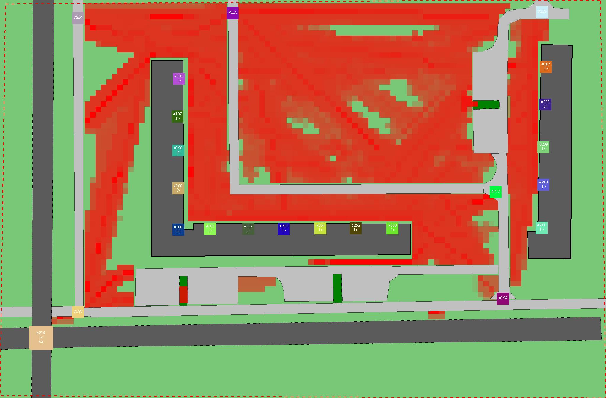 Красным цветом показаны места, где, вероятнее всего, появятся стихийные тропы..
