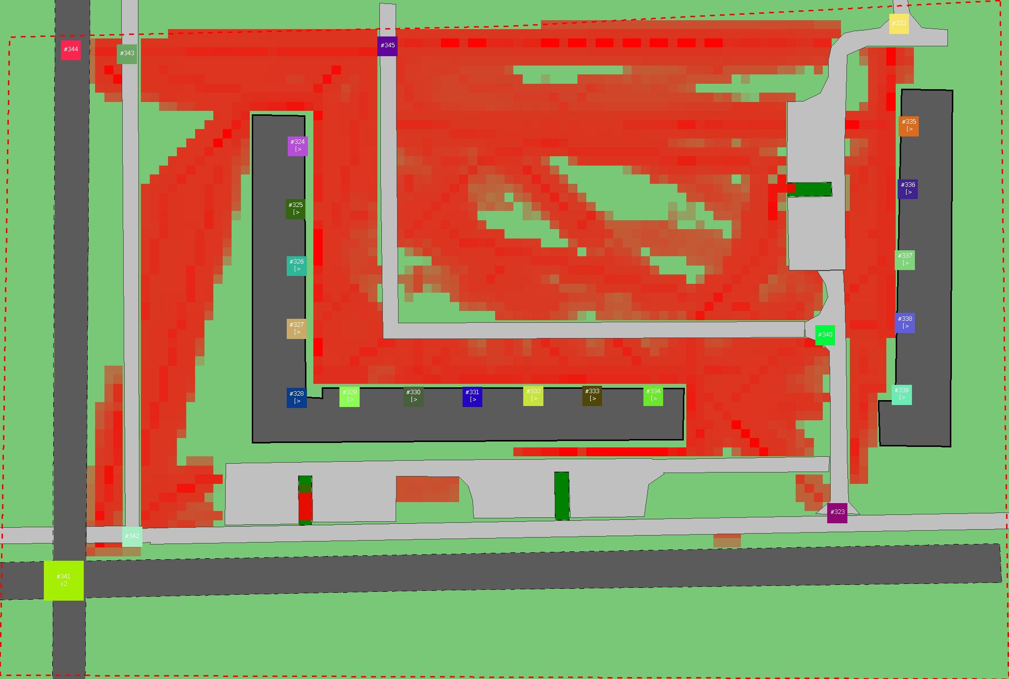 Красным цветом показаны места, где, вероятнее всего, появятся стихийные тропы..