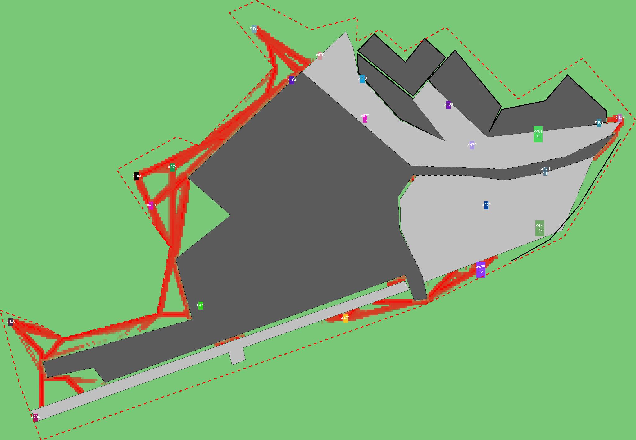 Красным цветом показаны места, где, вероятнее всего, появятся стихийные тропы..