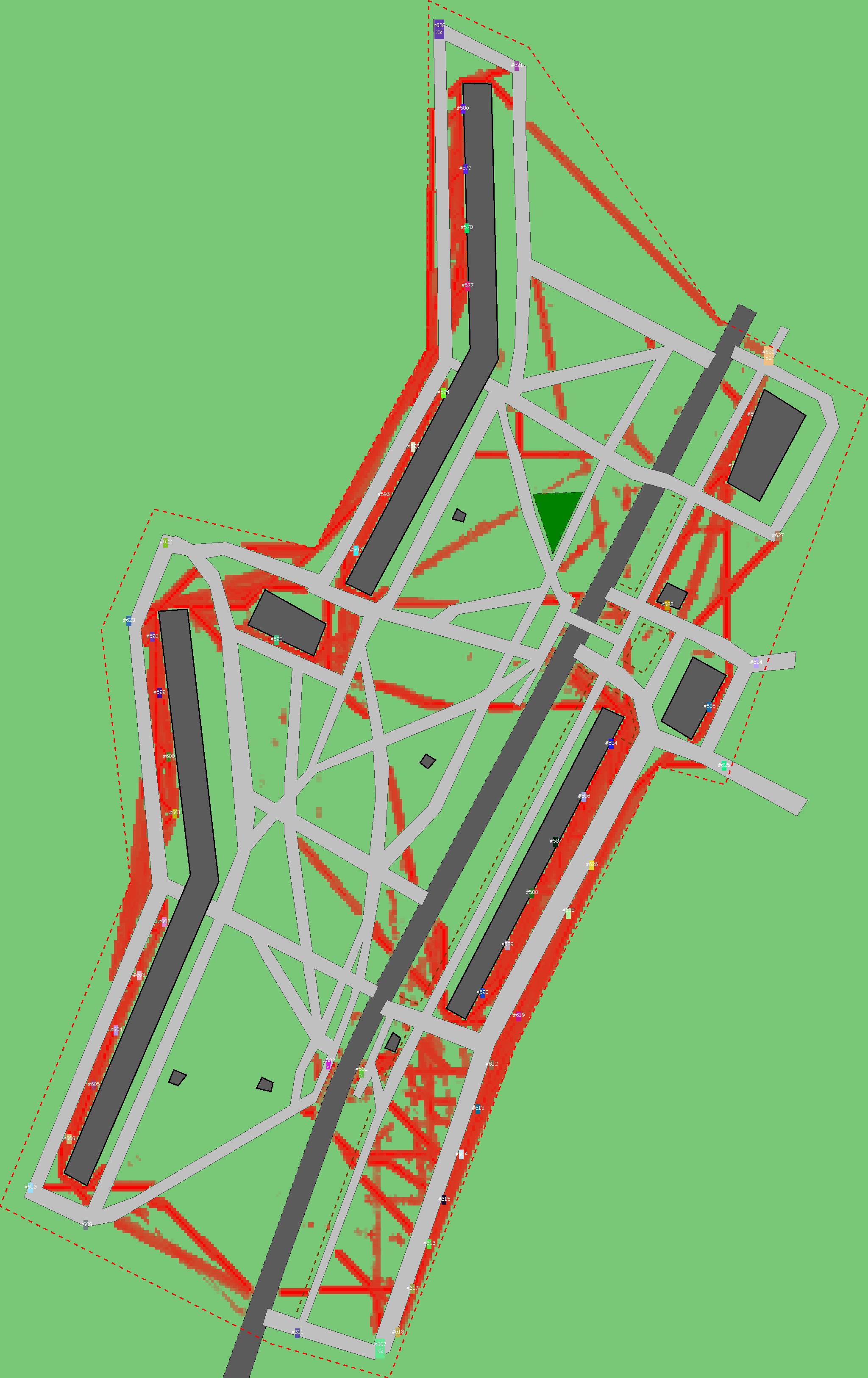 Красным цветом показаны места, где, вероятнее всего, появятся стихийные тропы..
