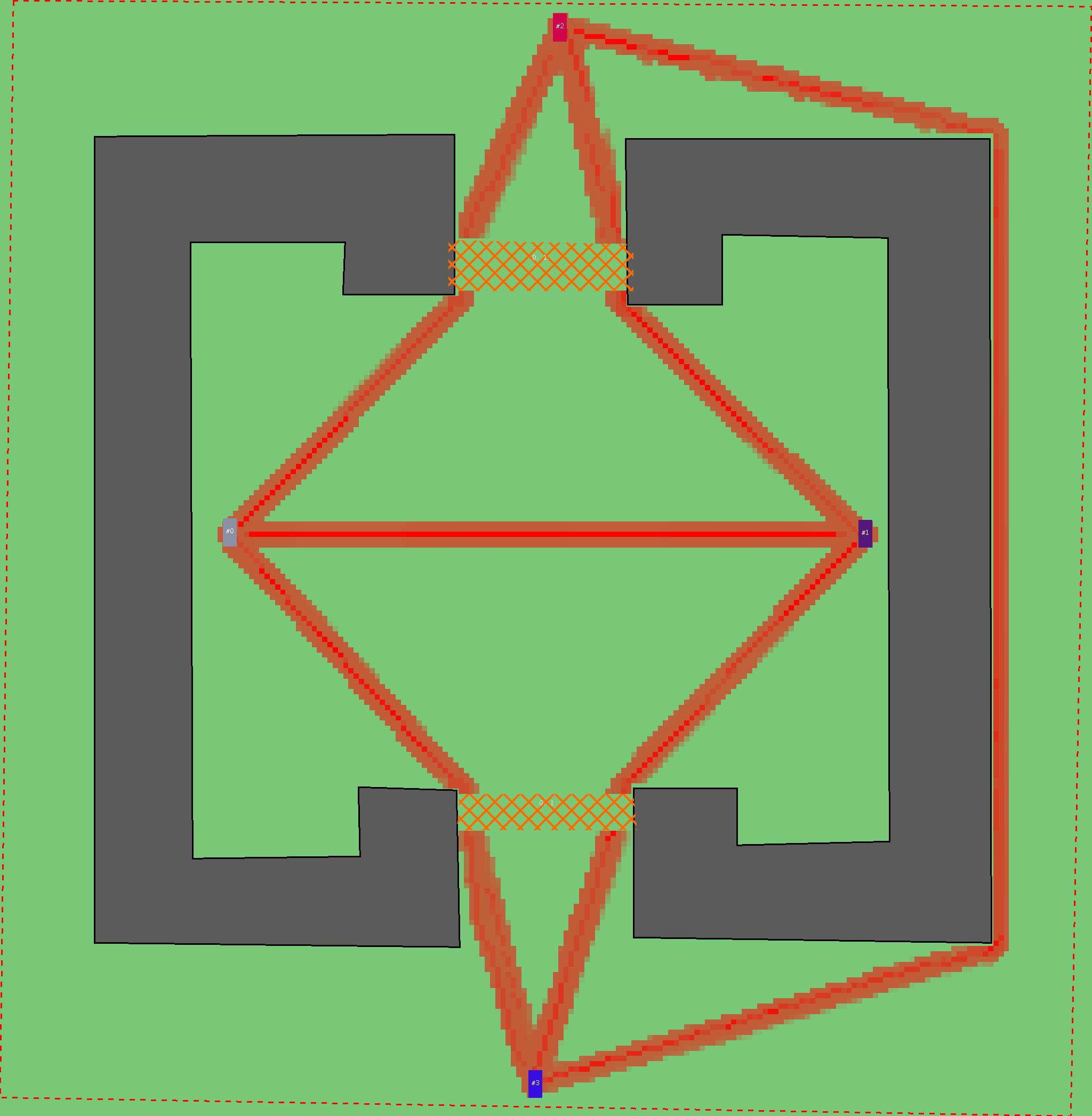 Красным цветом показаны места, где, вероятнее всего, появятся стихийные тропы..