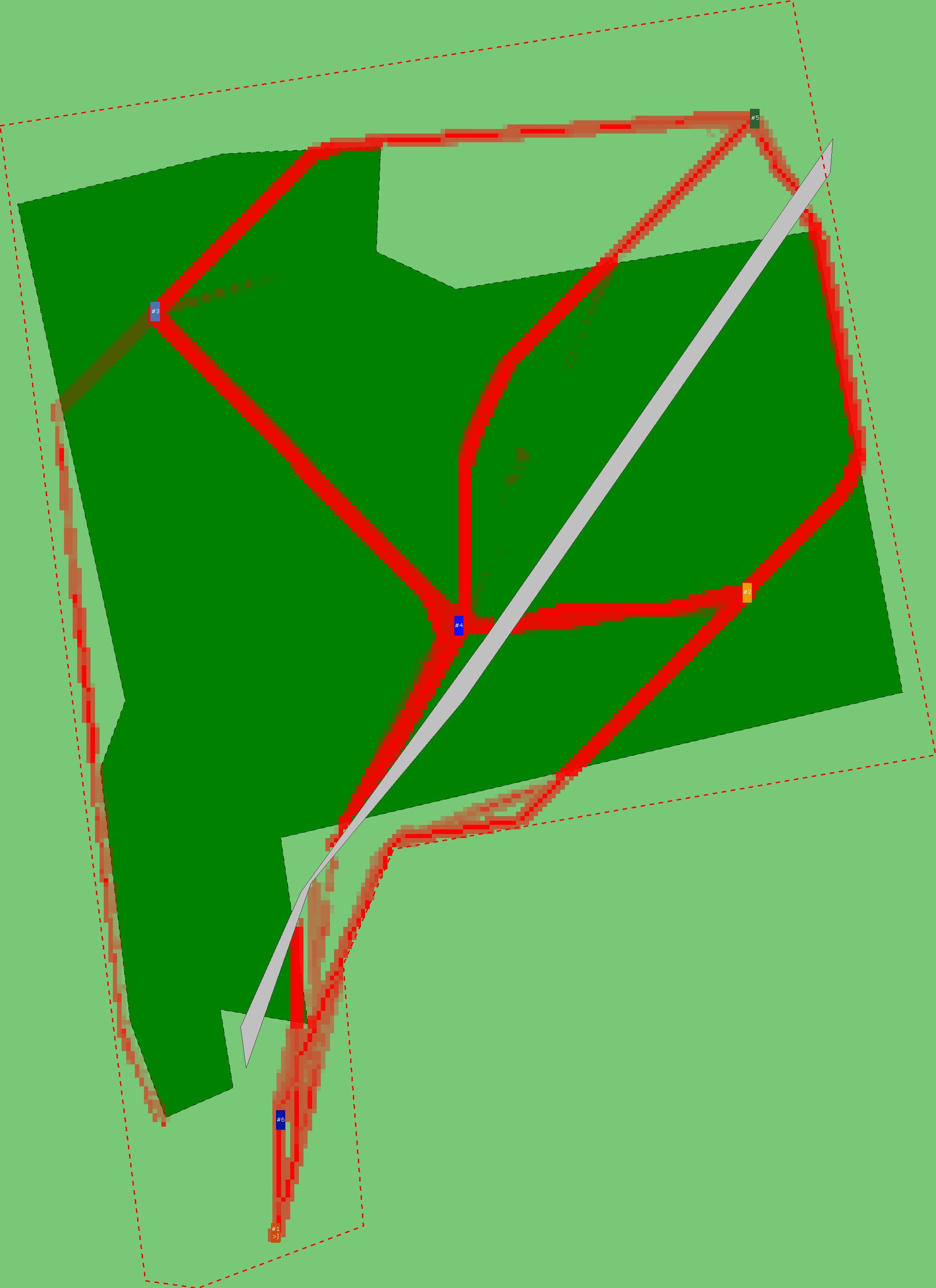 Красным цветом показаны места, где, вероятнее всего, появятся стихийные тропы..