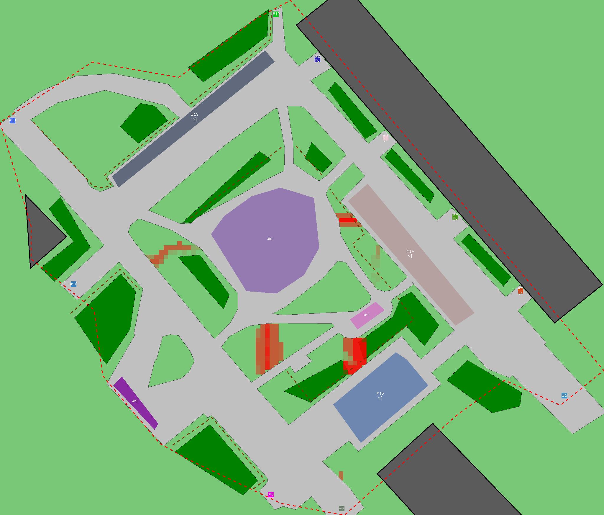 Красным цветом показаны места, где, вероятнее всего, появятся стихийные тропы..