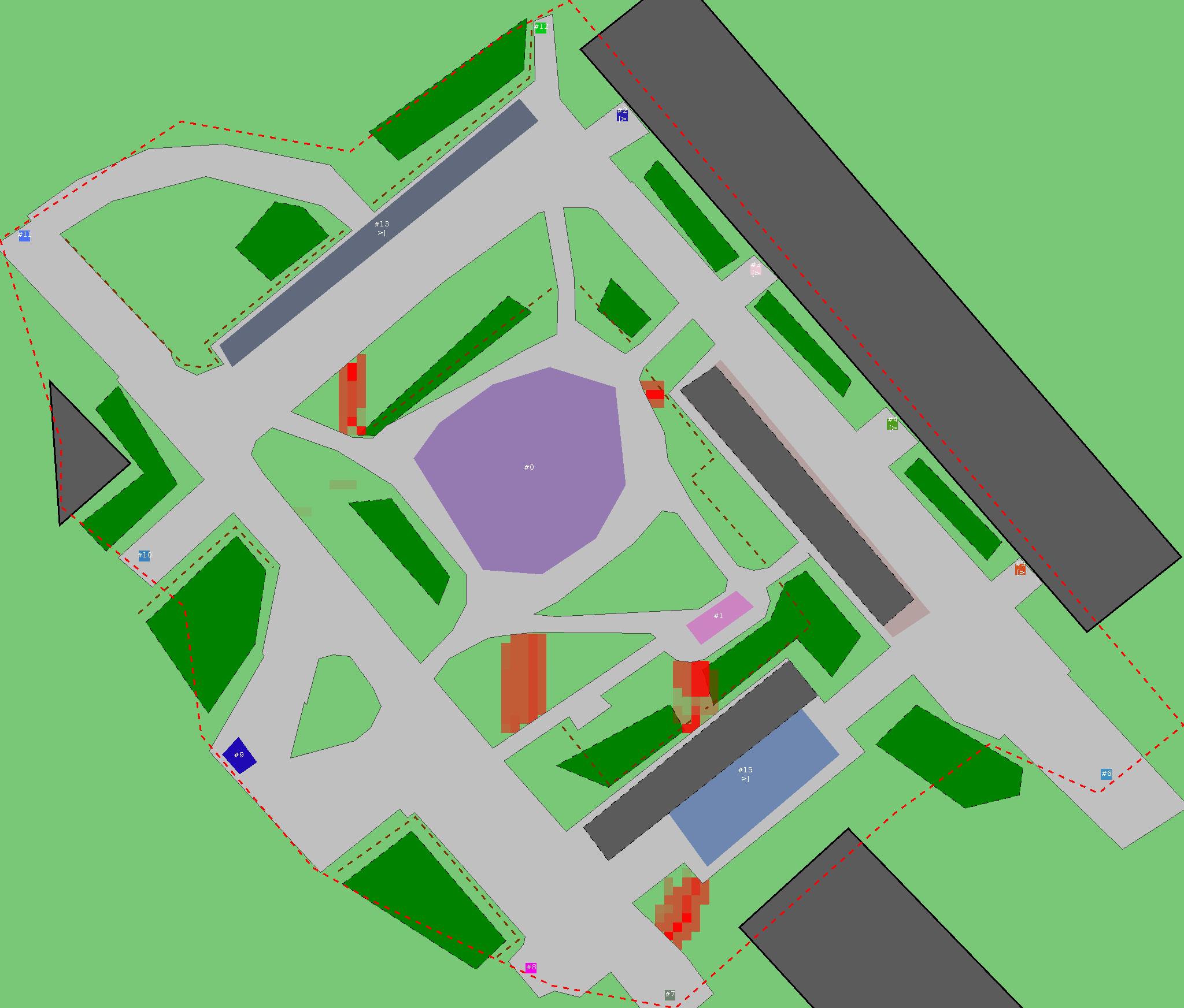 Красным цветом показаны места, где, вероятнее всего, появятся стихийные тропы..