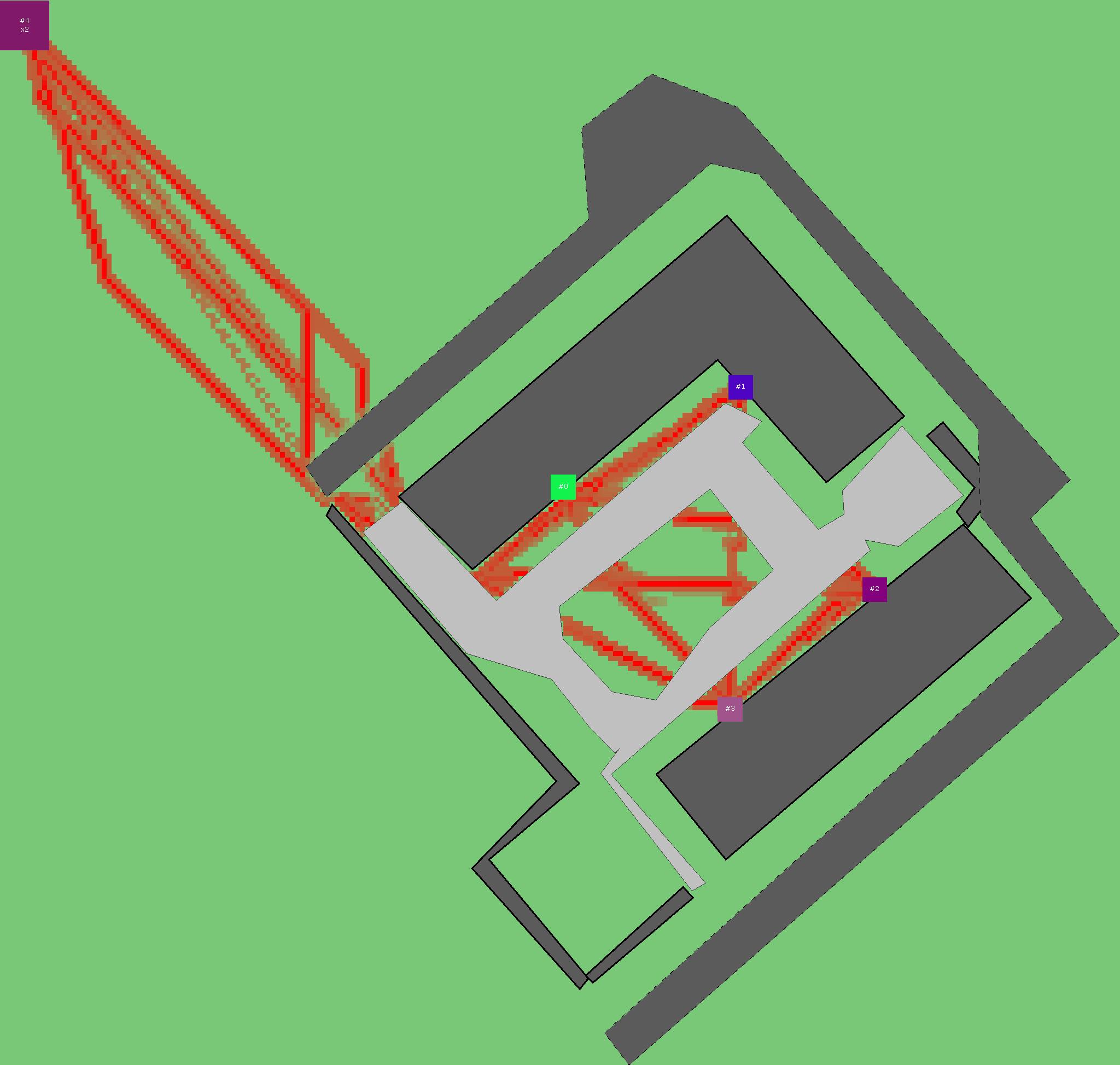 Красным цветом показаны места, где, вероятнее всего, появятся стихийные тропы..
