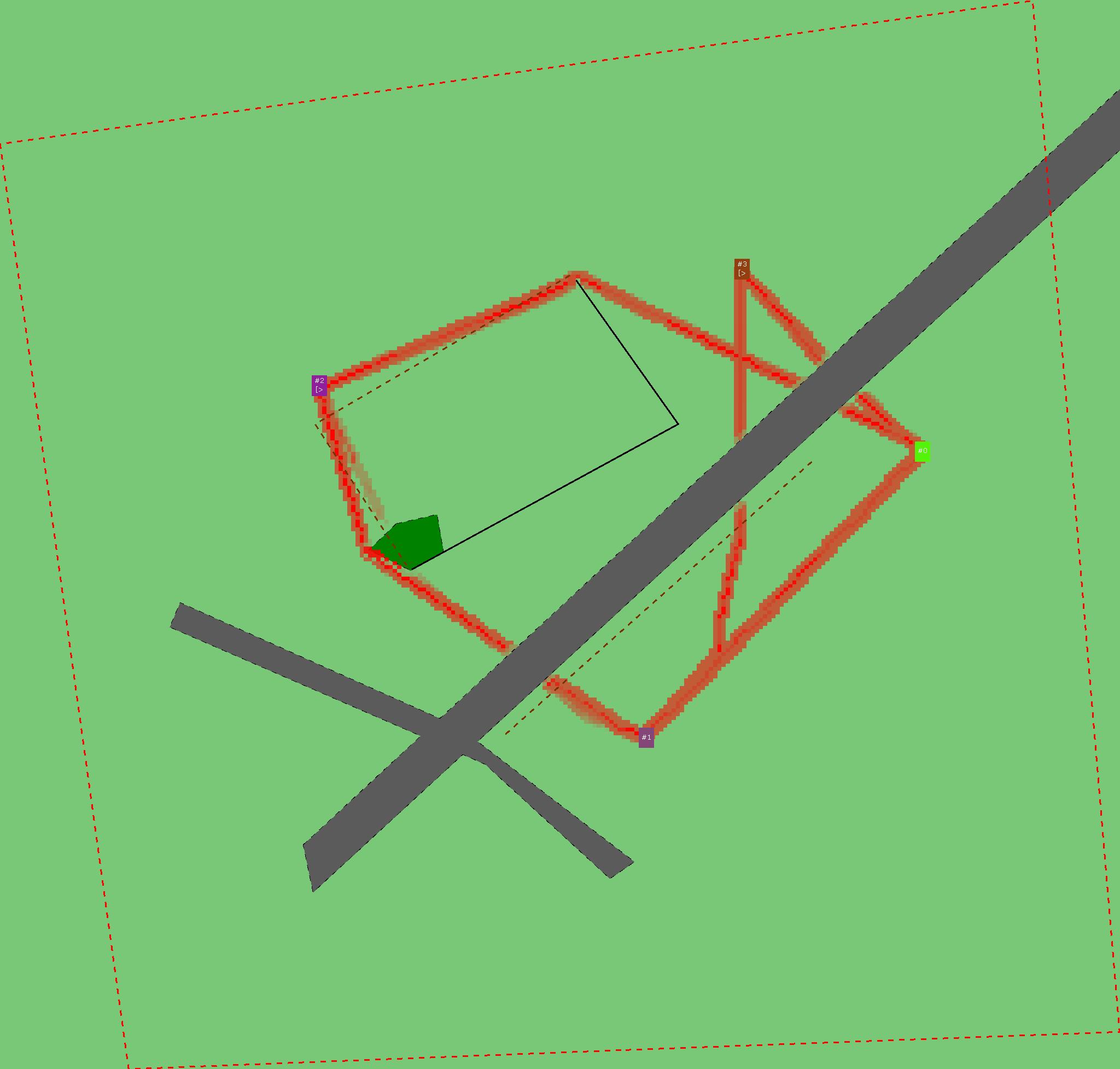 Красным цветом показаны места, где, вероятнее всего, появятся стихийные тропы..