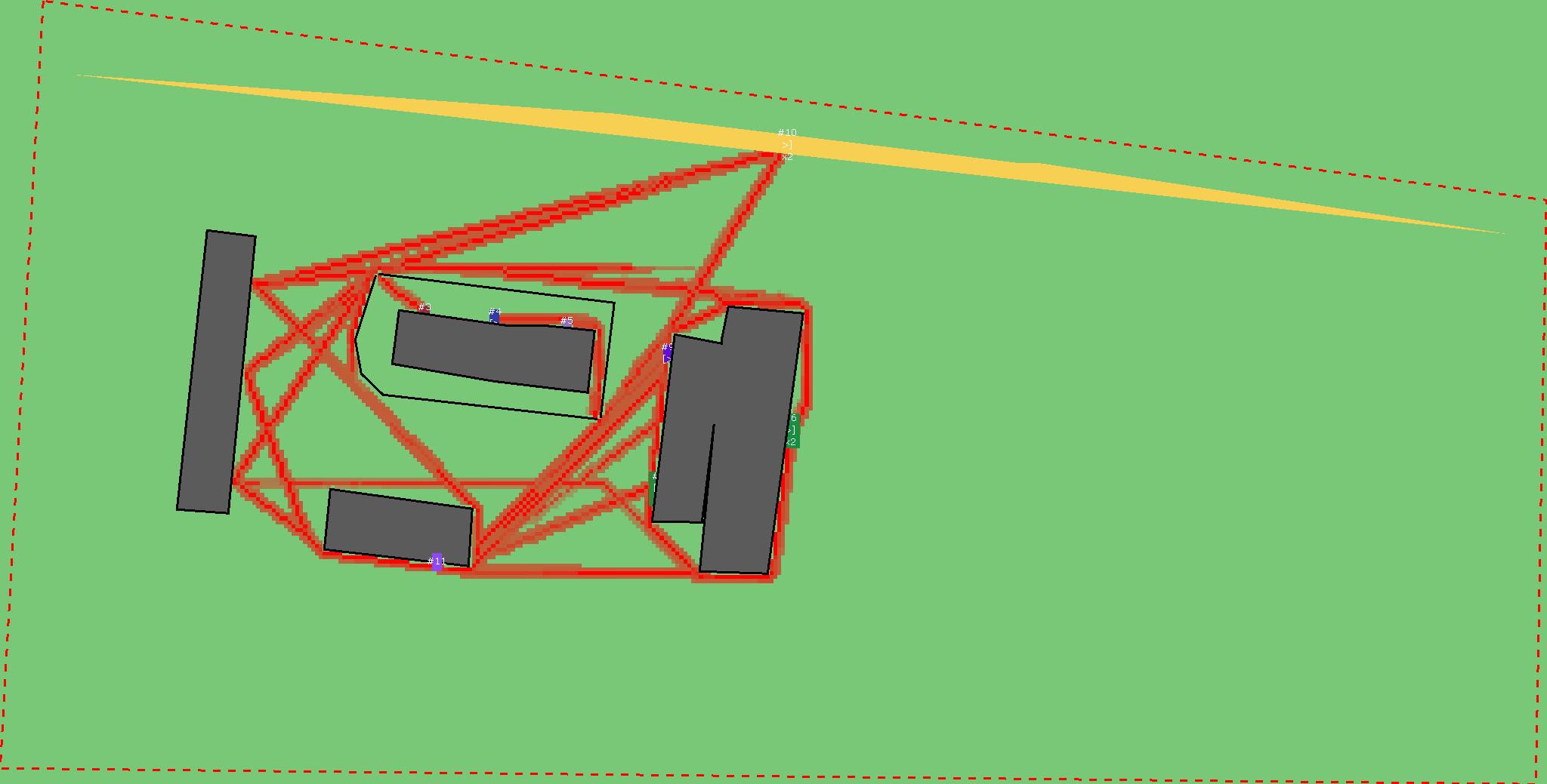 Красным цветом показаны места, где, вероятнее всего, появятся стихийные тропы..