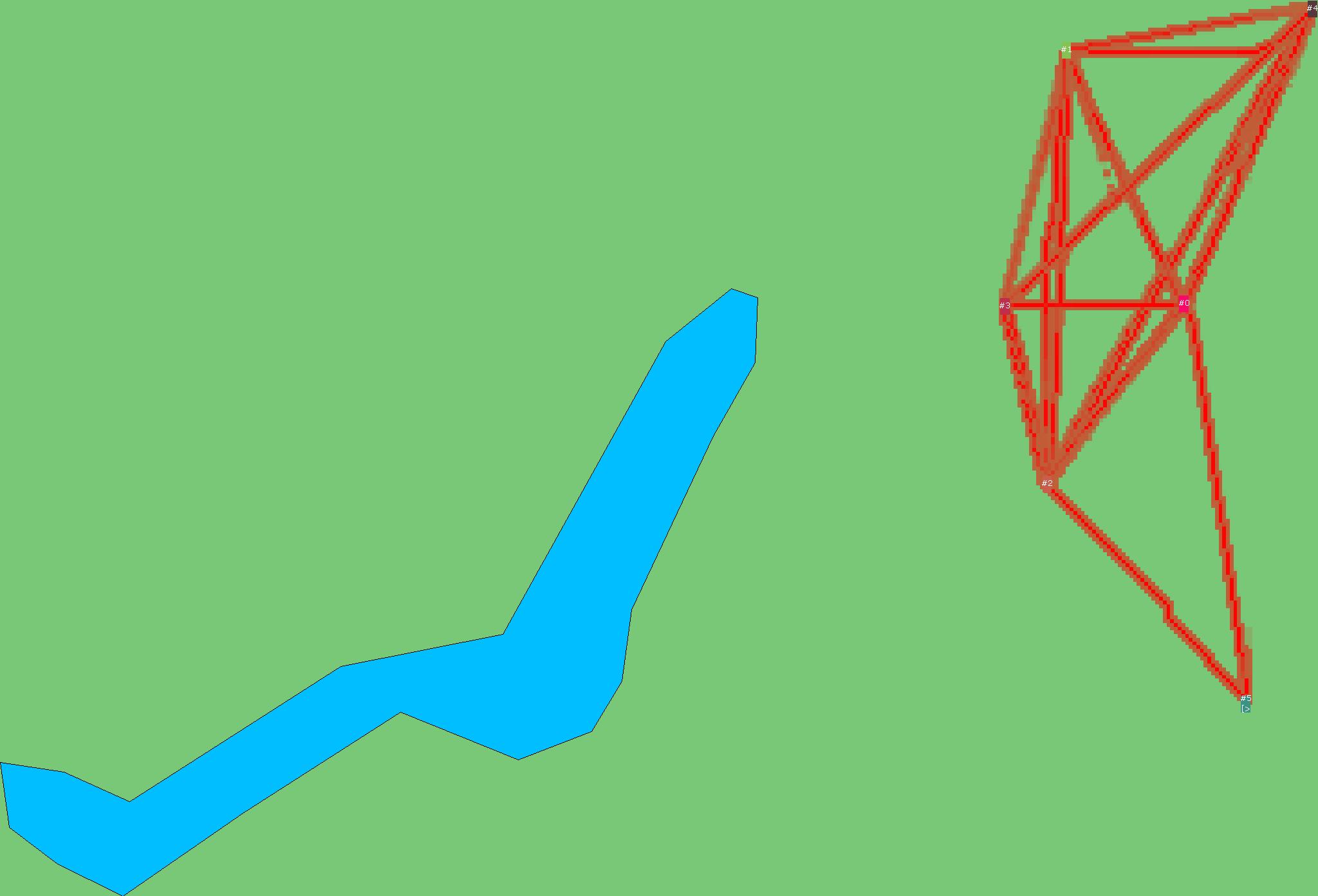 Красным цветом показаны места, где, вероятнее всего, появятся стихийные тропы..