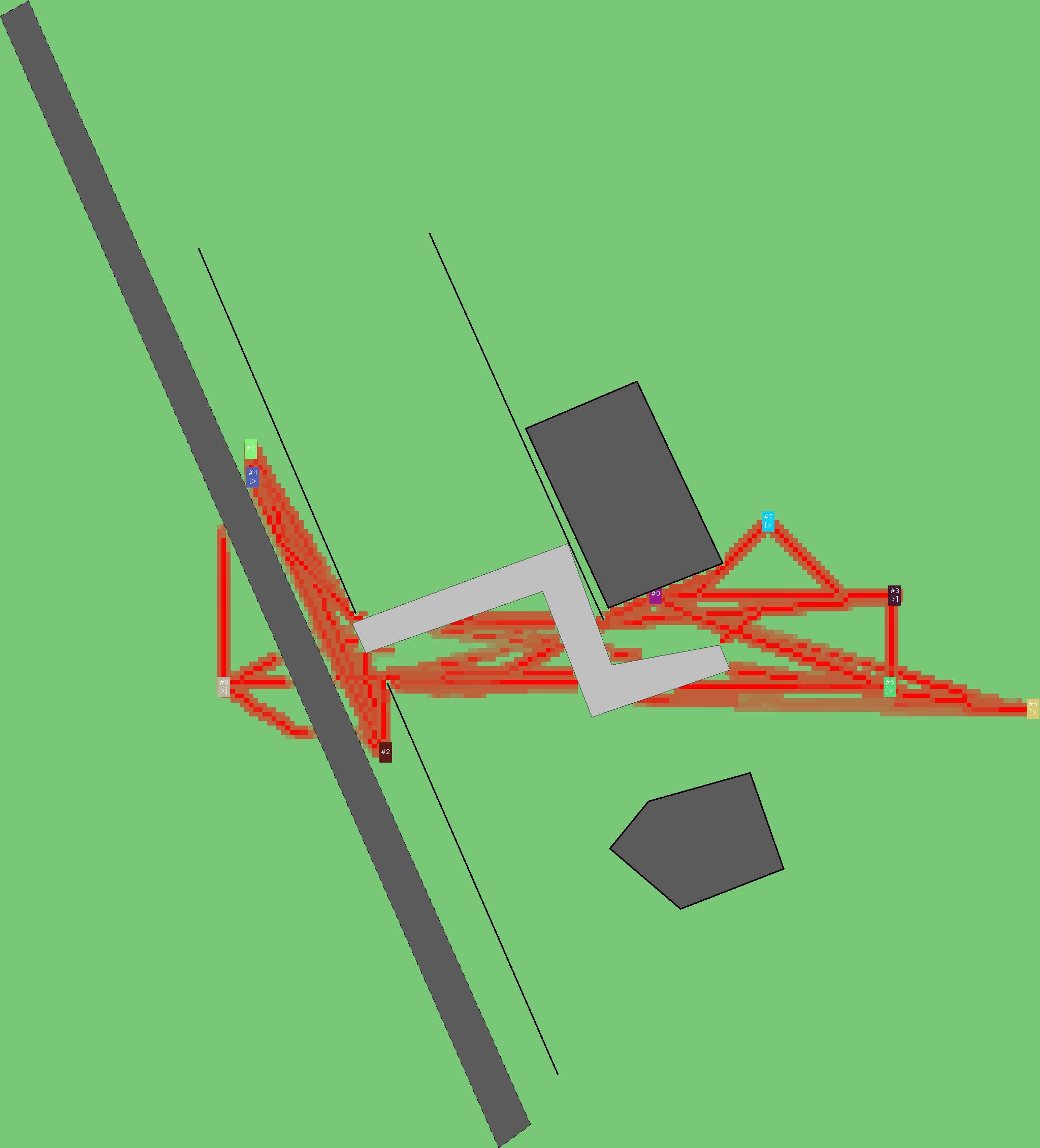 Красным цветом показаны места, где, вероятнее всего, появятся стихийные тропы..
