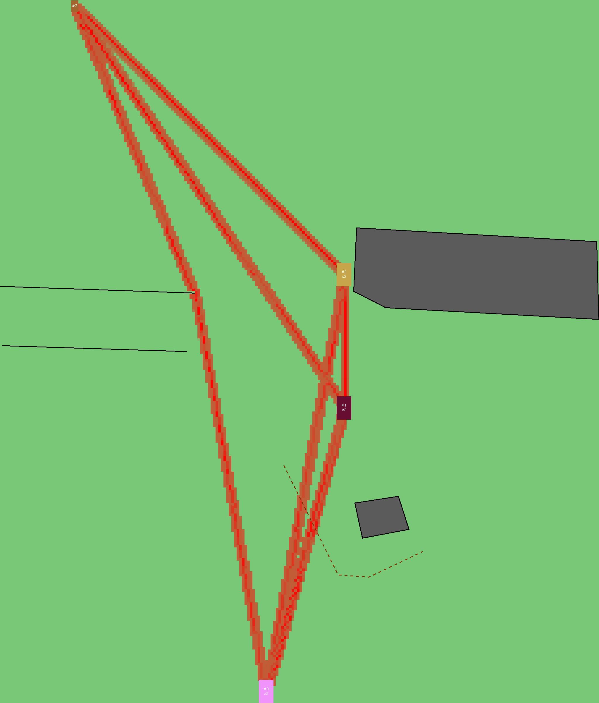 Красным цветом показаны места, где, вероятнее всего, появятся стихийные тропы..