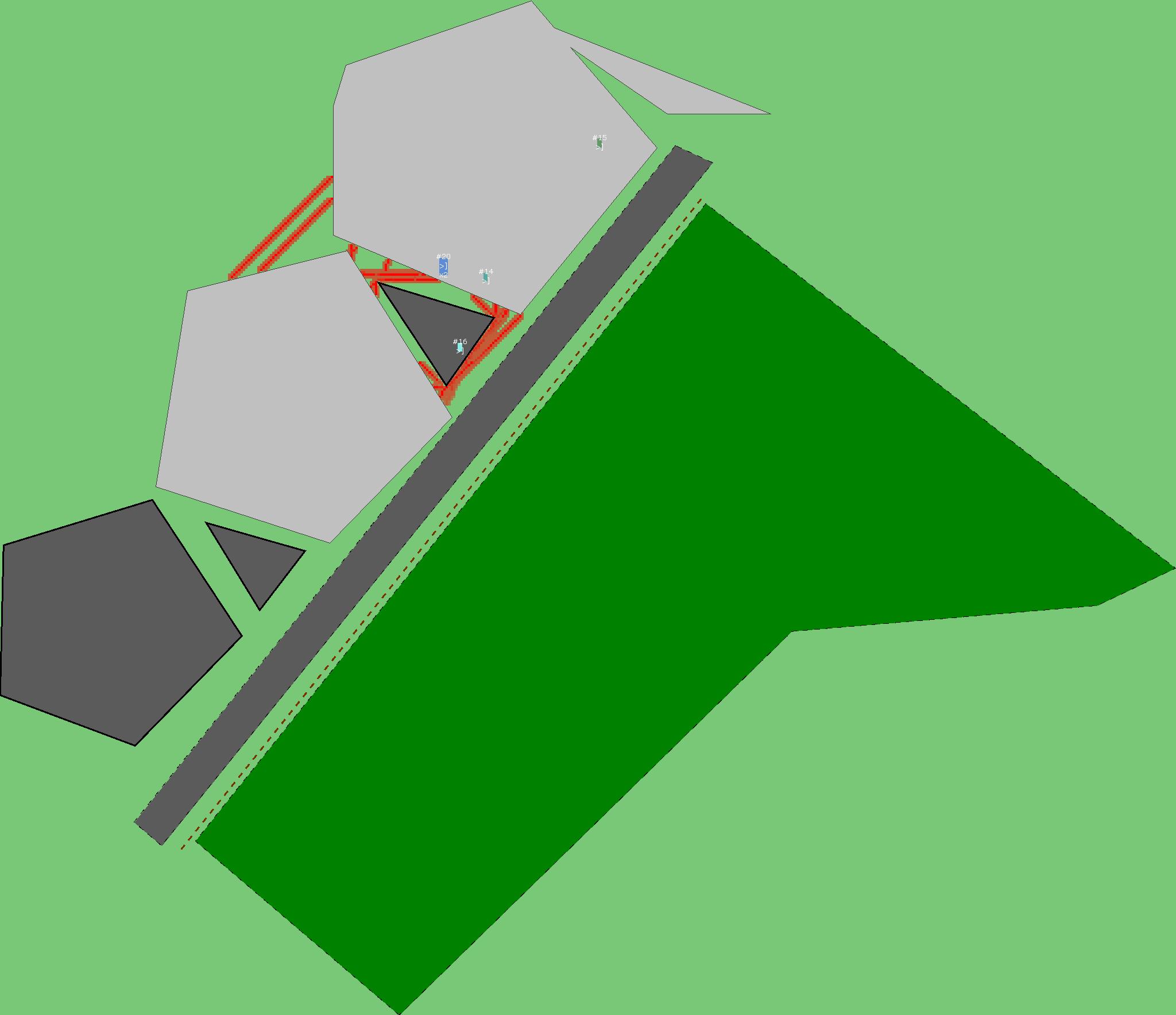 Красным цветом показаны места, где, вероятнее всего, появятся стихийные тропы..