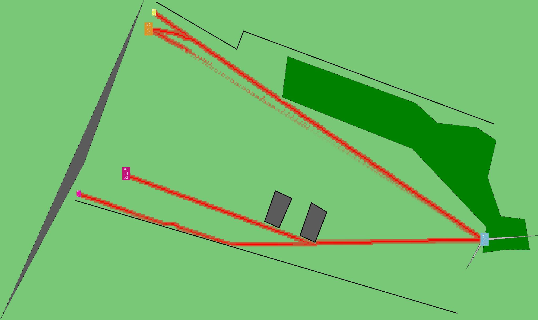 Красным цветом показаны места, где, вероятнее всего, появятся стихийные тропы..