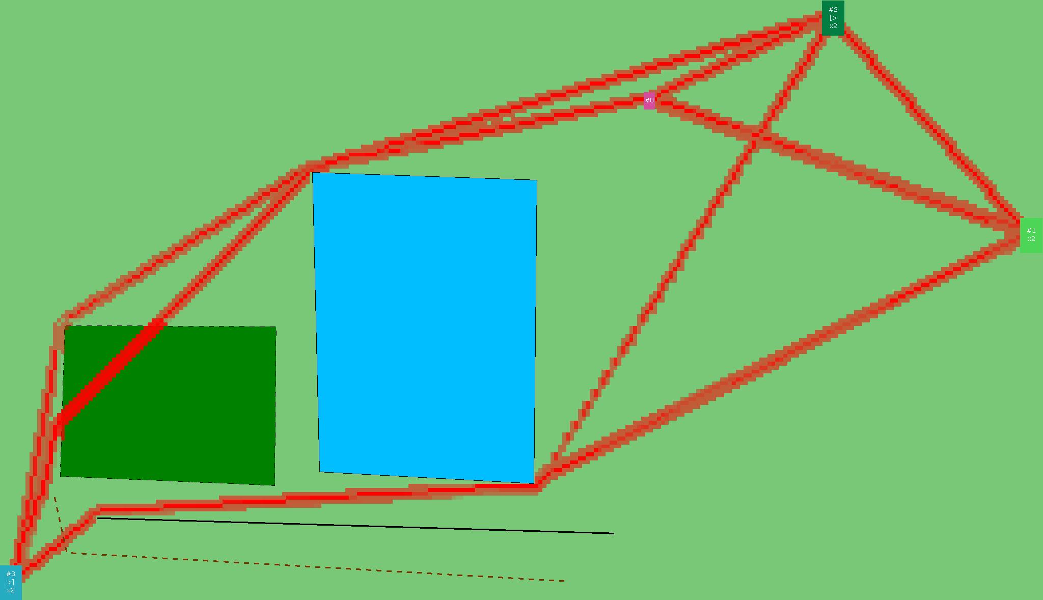 Красным цветом показаны места, где, вероятнее всего, появятся стихийные тропы..