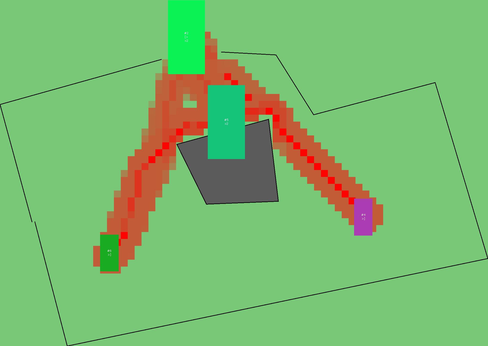 Красным цветом показаны места, где, вероятнее всего, появятся стихийные тропы..