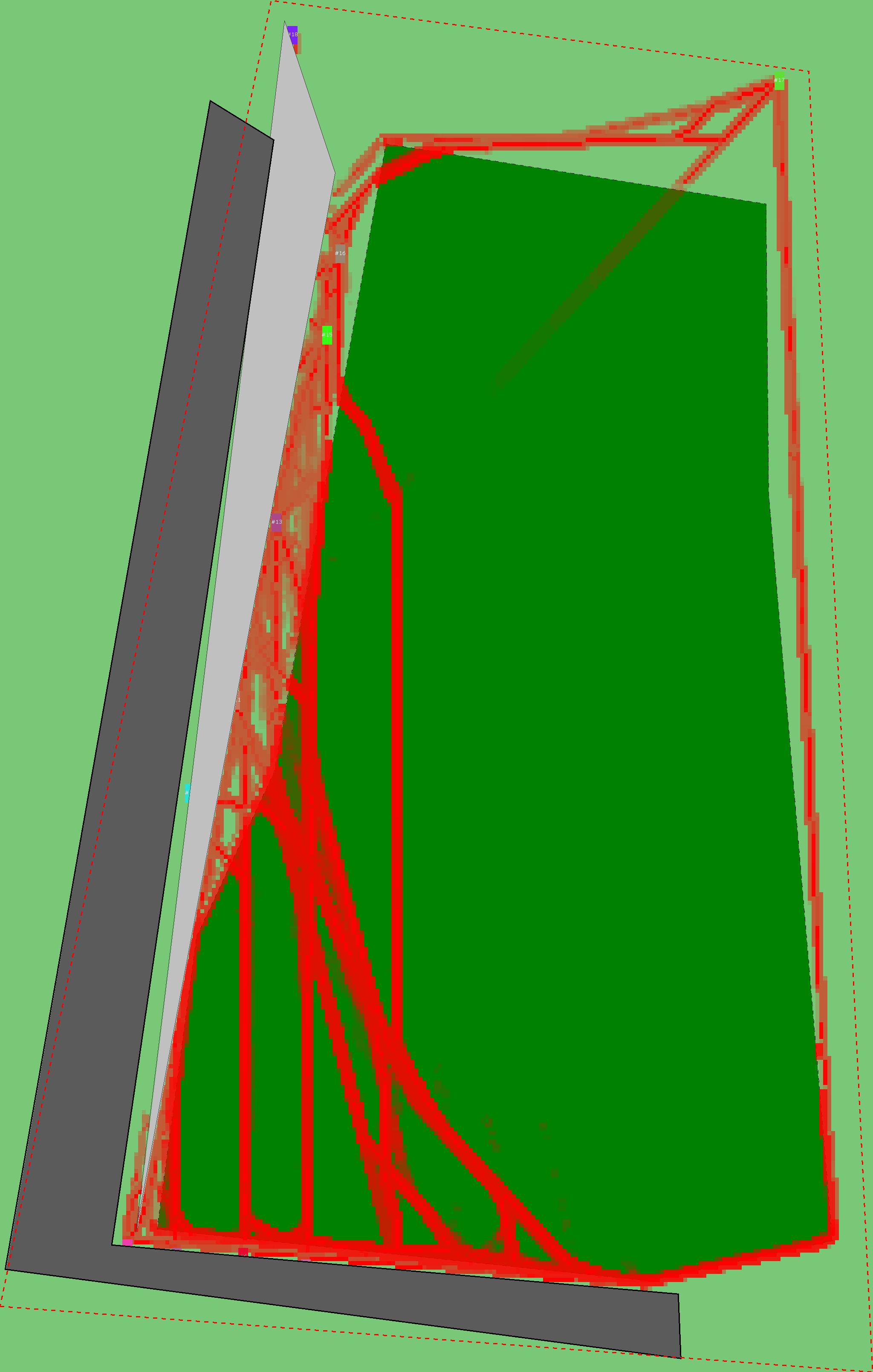 Красным цветом показаны места, где, вероятнее всего, появятся стихийные тропы..