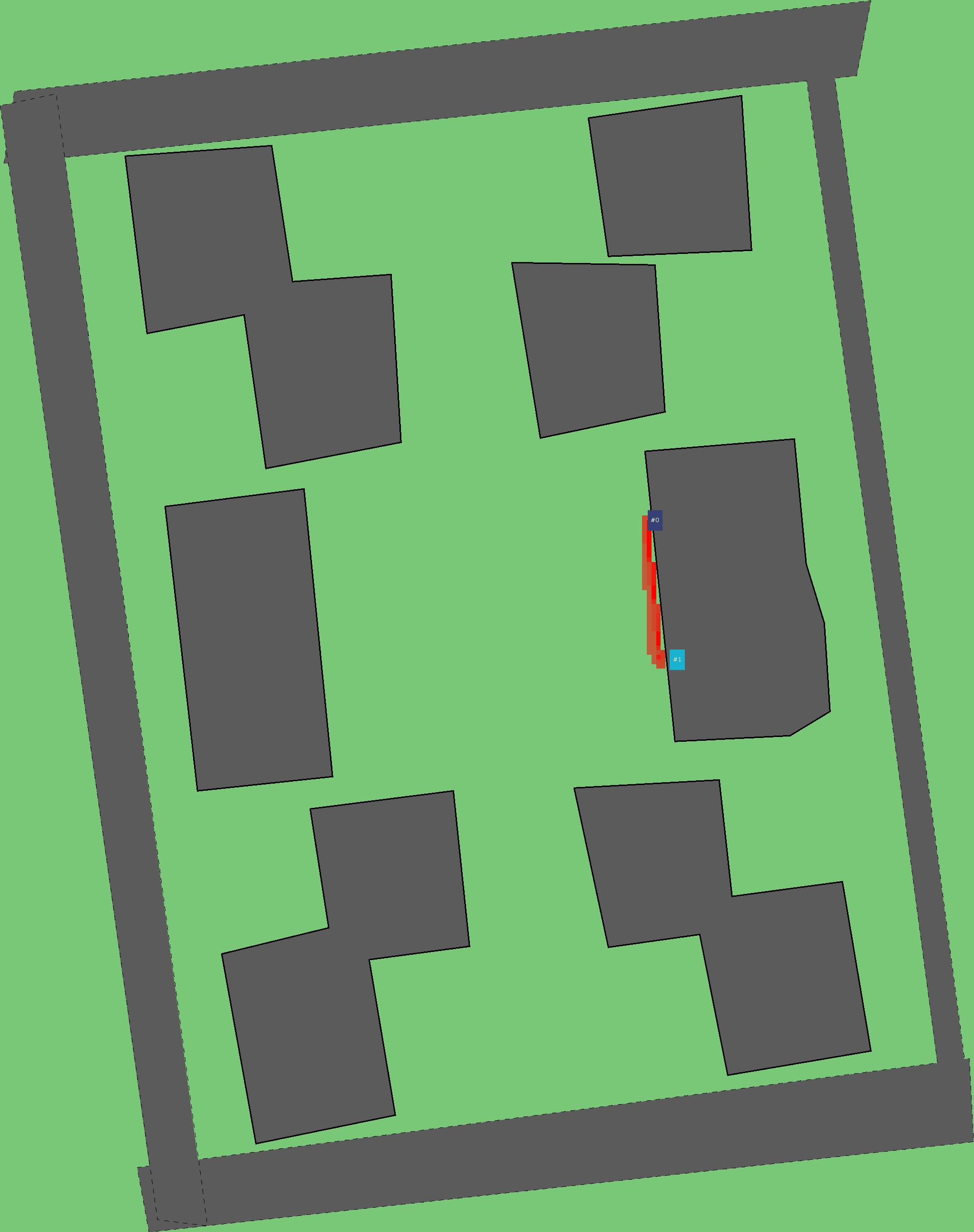 Красным цветом показаны места, где, вероятнее всего, появятся стихийные тропы..