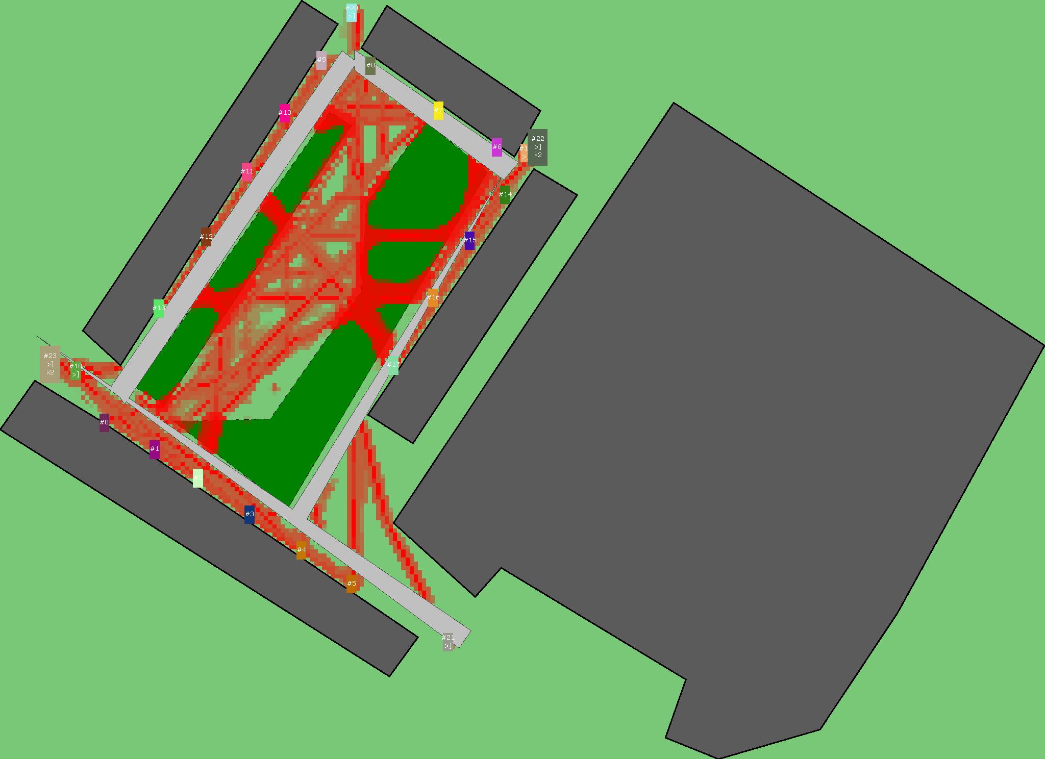 Красным цветом показаны места, где, вероятнее всего, появятся стихийные тропы..