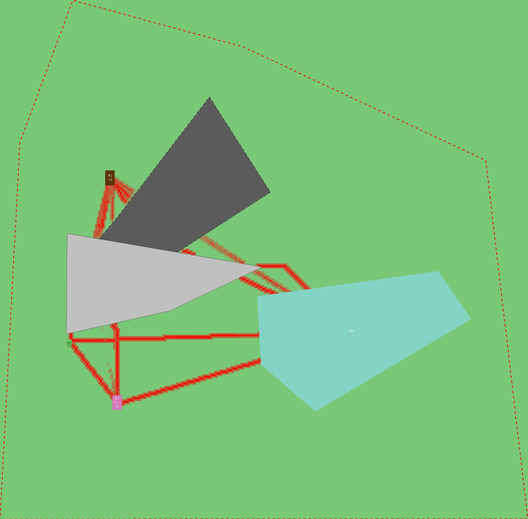 Красным цветом показаны места, где, вероятнее всего, появятся стихийные тропы..
