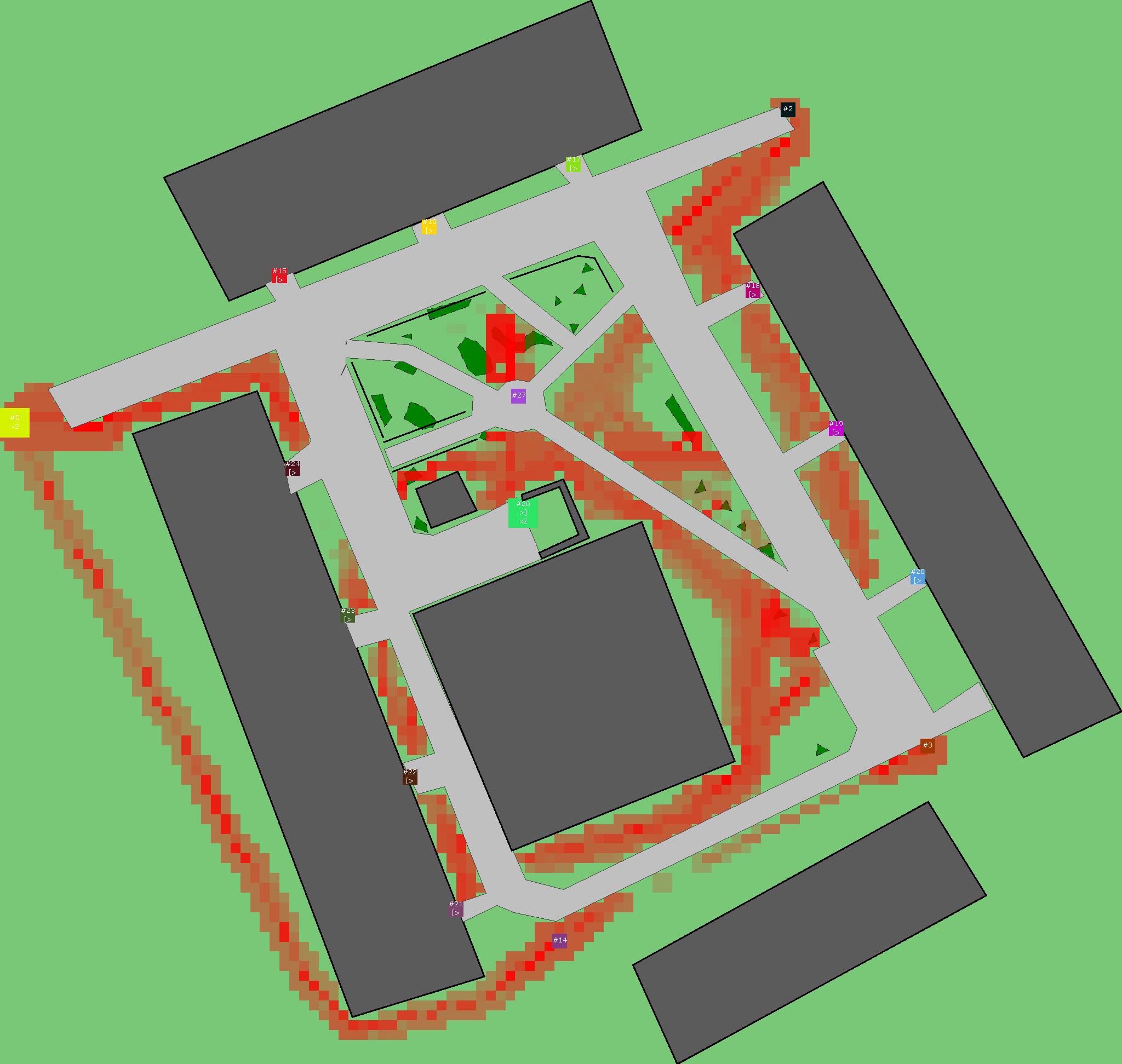 Красным цветом показаны места, где, вероятнее всего, появятся стихийные тропы..