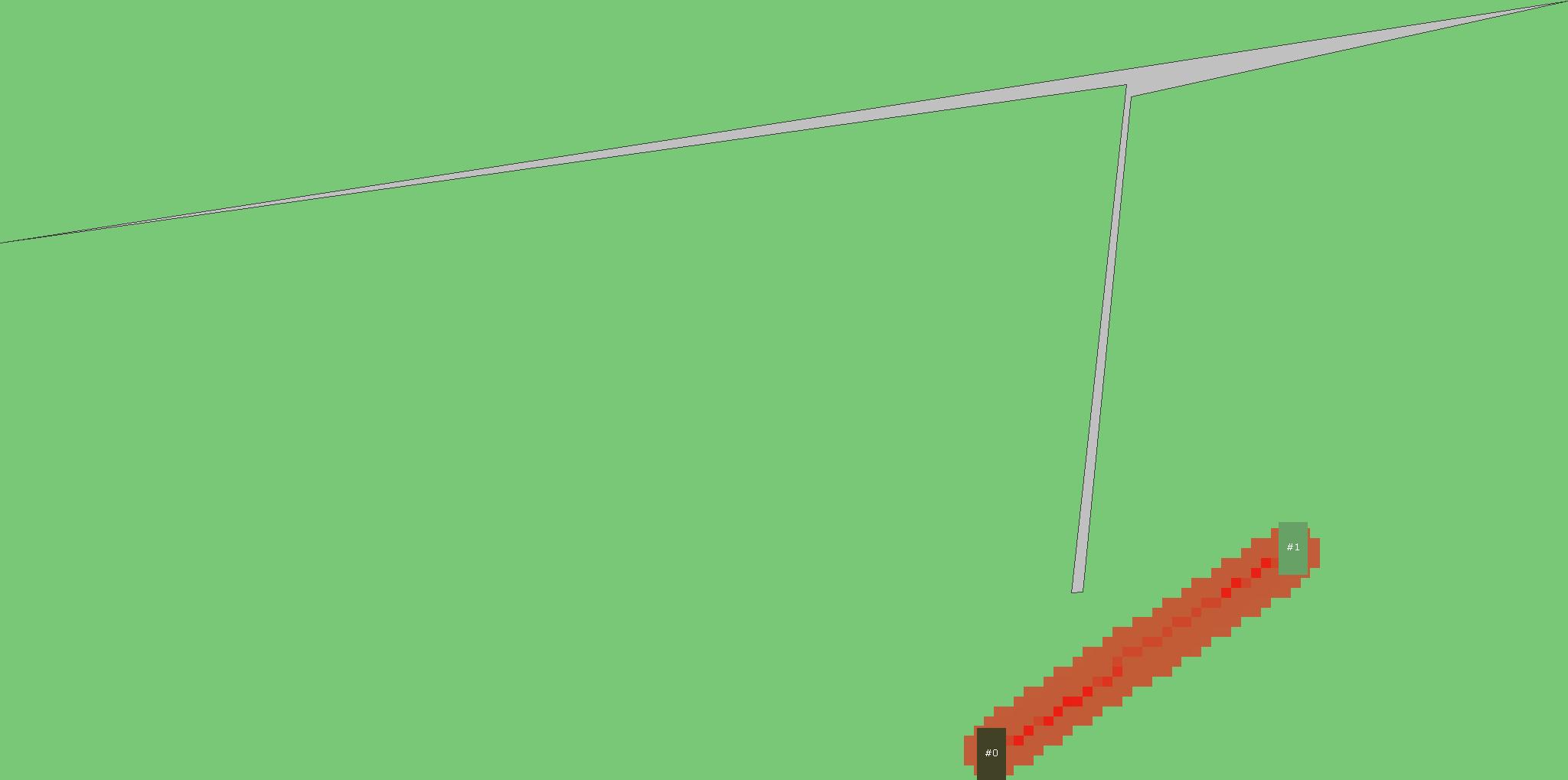 Красным цветом показаны места, где, вероятнее всего, появятся стихийные тропы..