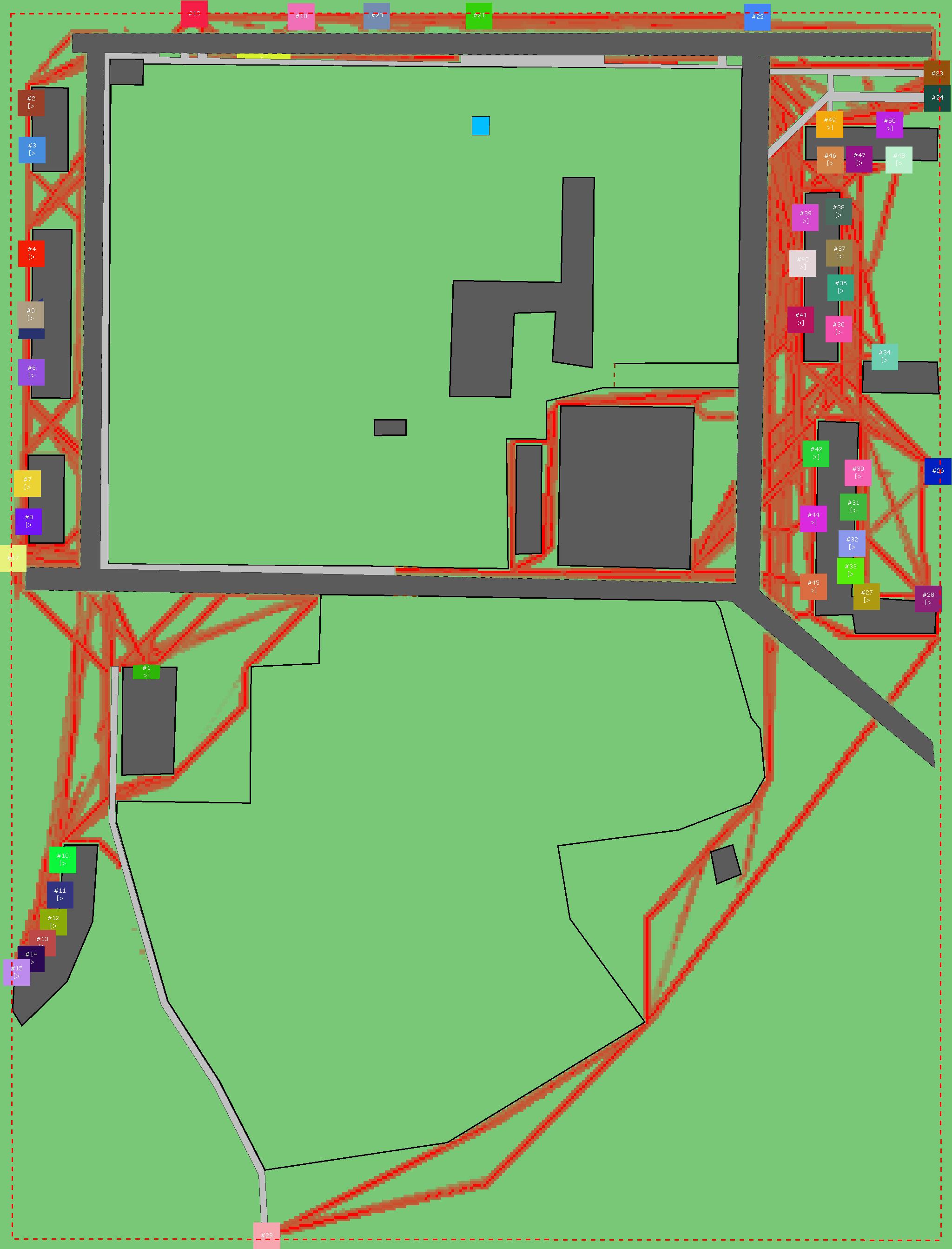 Красным цветом показаны места, где, вероятнее всего, появятся стихийные тропы..