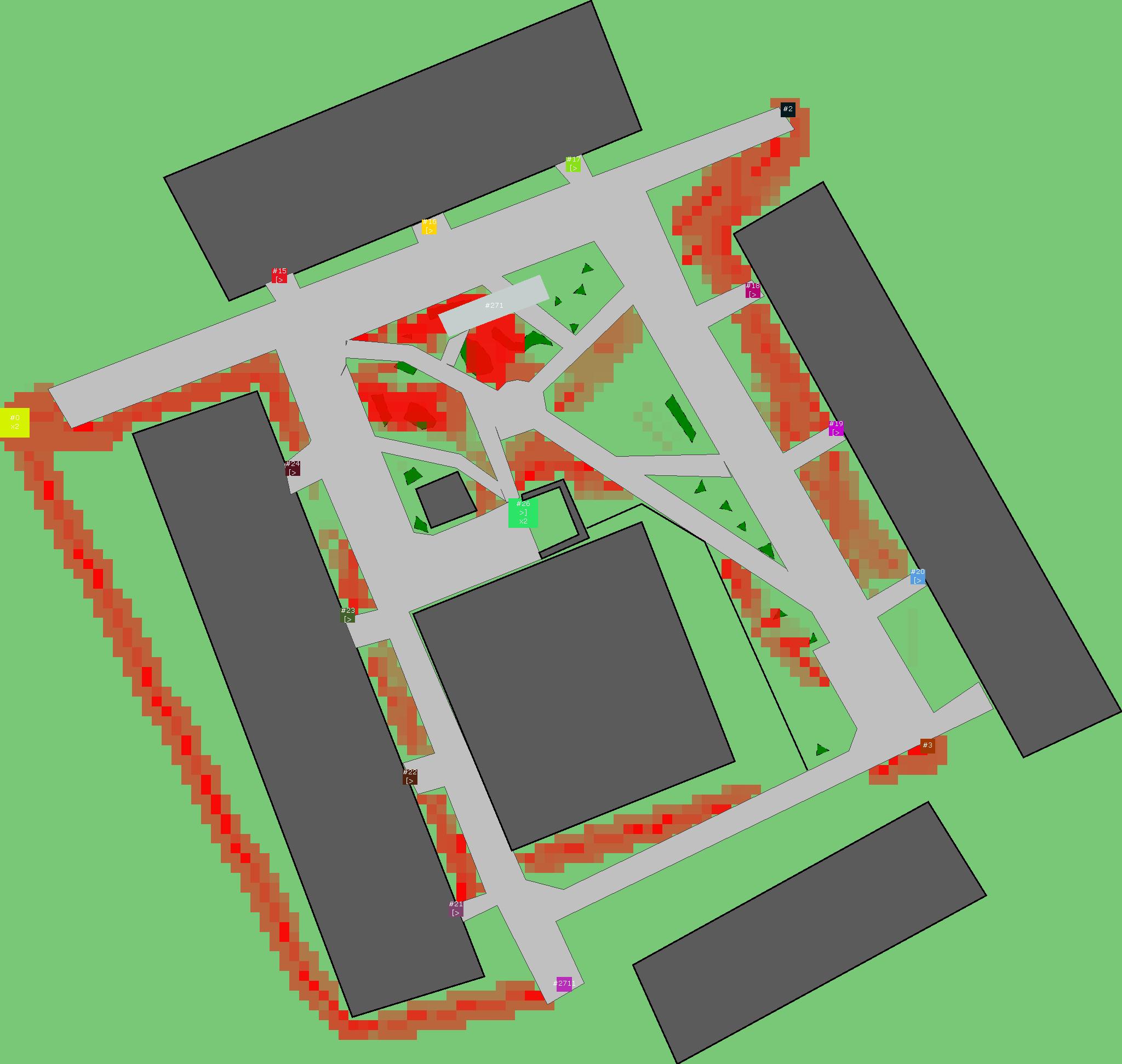 Красным цветом показаны места, где, вероятнее всего, появятся стихийные тропы..