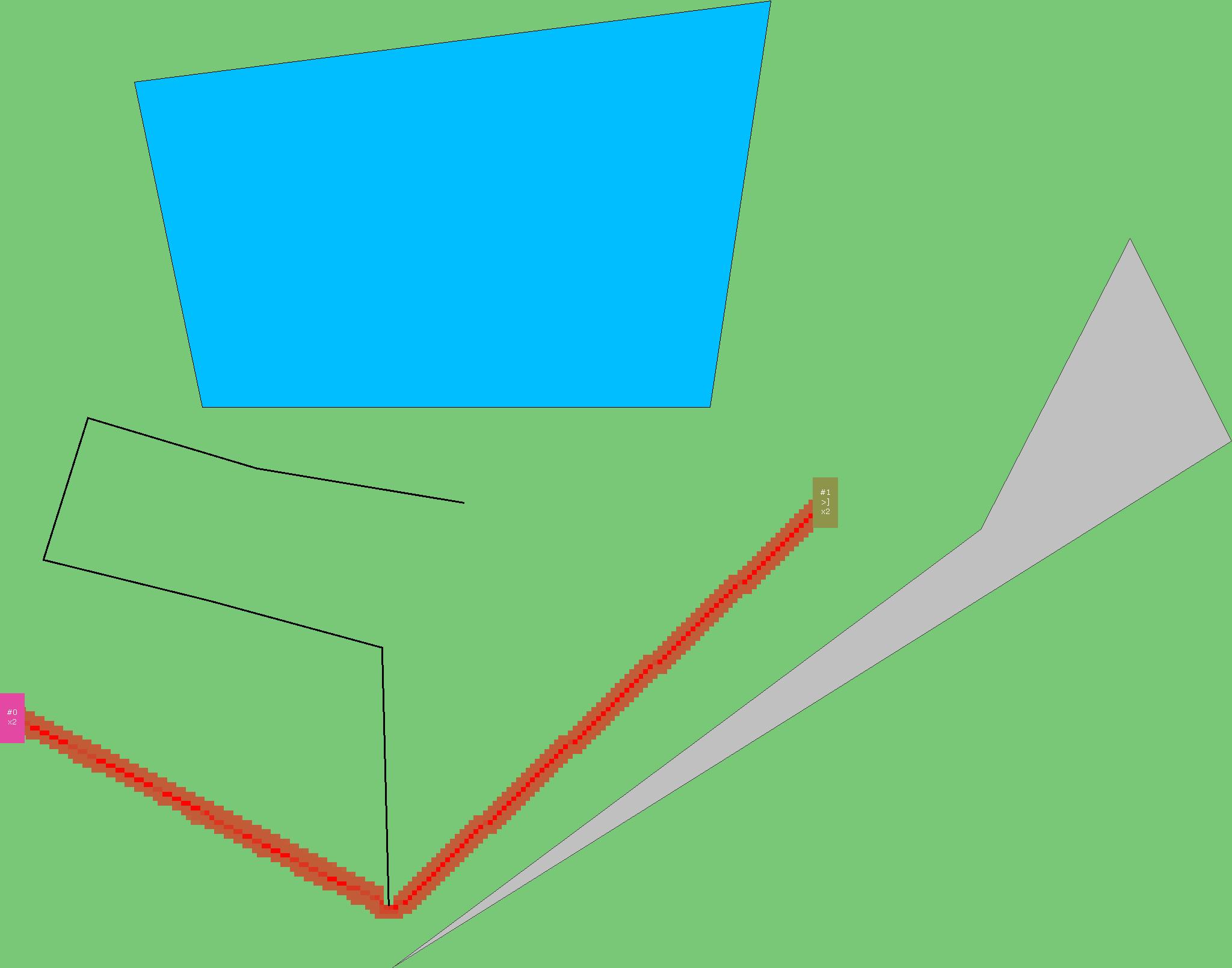 Красным цветом показаны места, где, вероятнее всего, появятся стихийные тропы..