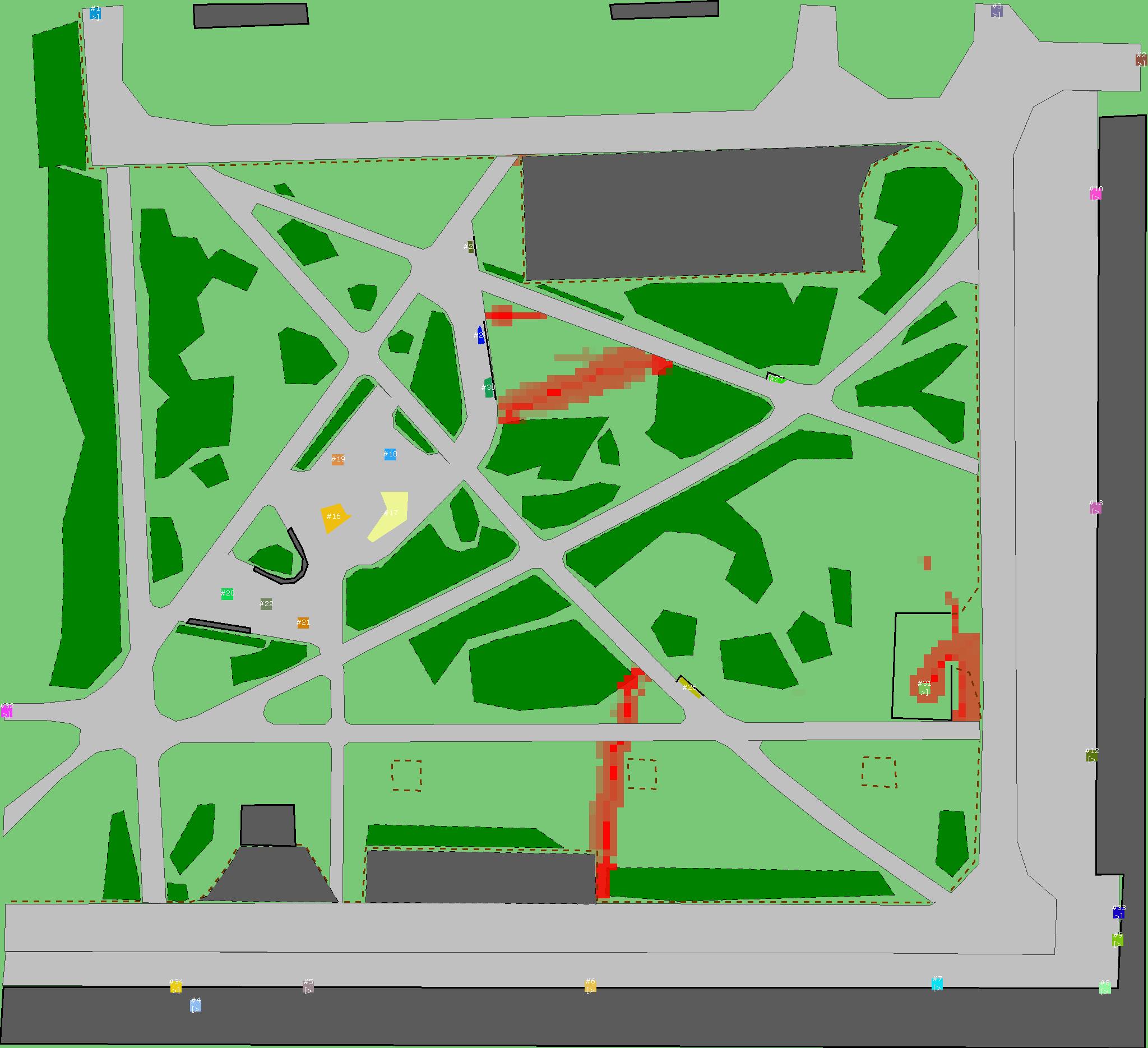 Красным цветом показаны места, где, вероятнее всего, появятся стихийные тропы..