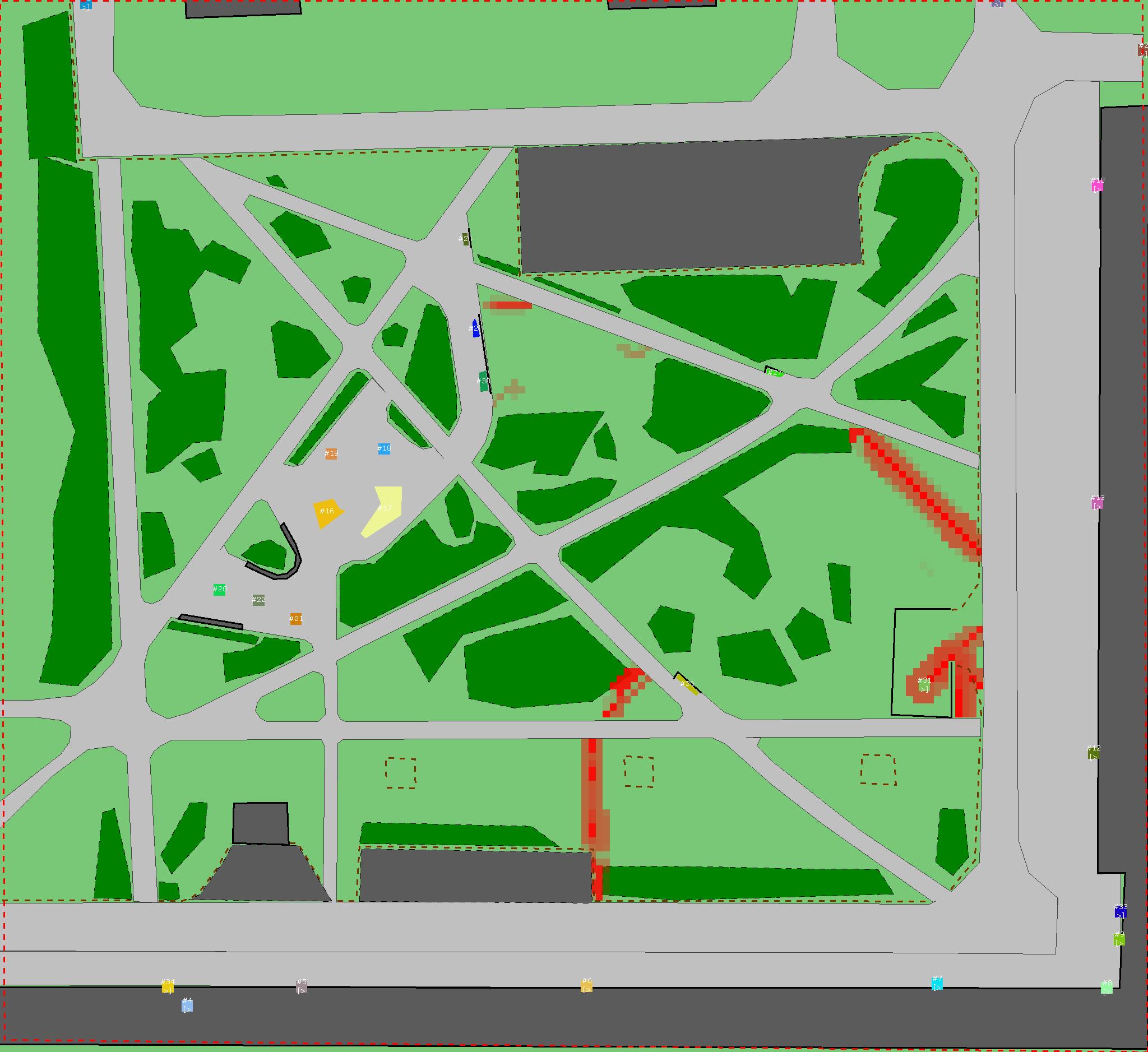 Красным цветом показаны места, где, вероятнее всего, появятся стихийные тропы..