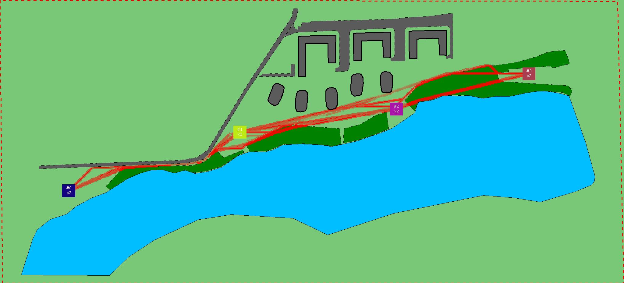 Красным цветом показаны места, где, вероятнее всего, появятся стихийные тропы..