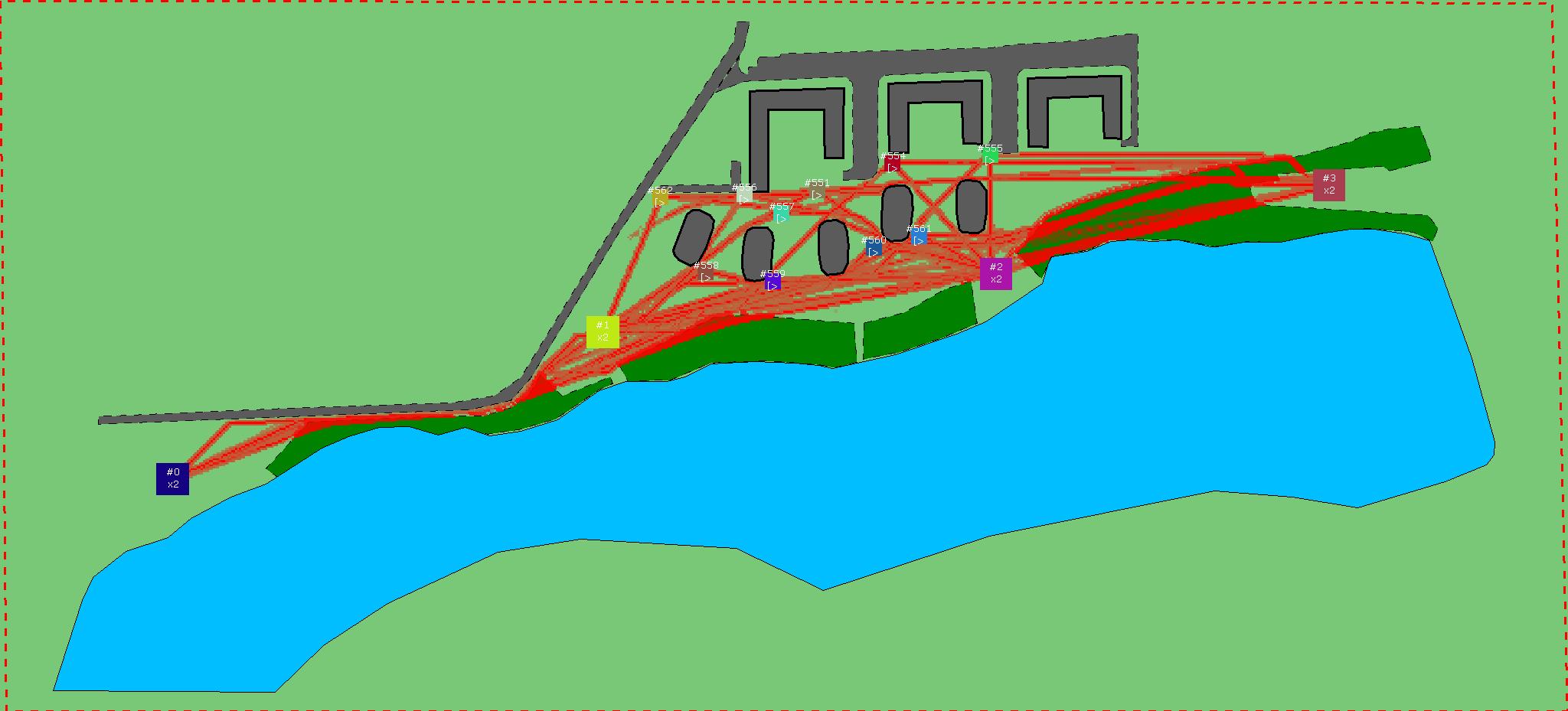 Красным цветом показаны места, где, вероятнее всего, появятся стихийные тропы..