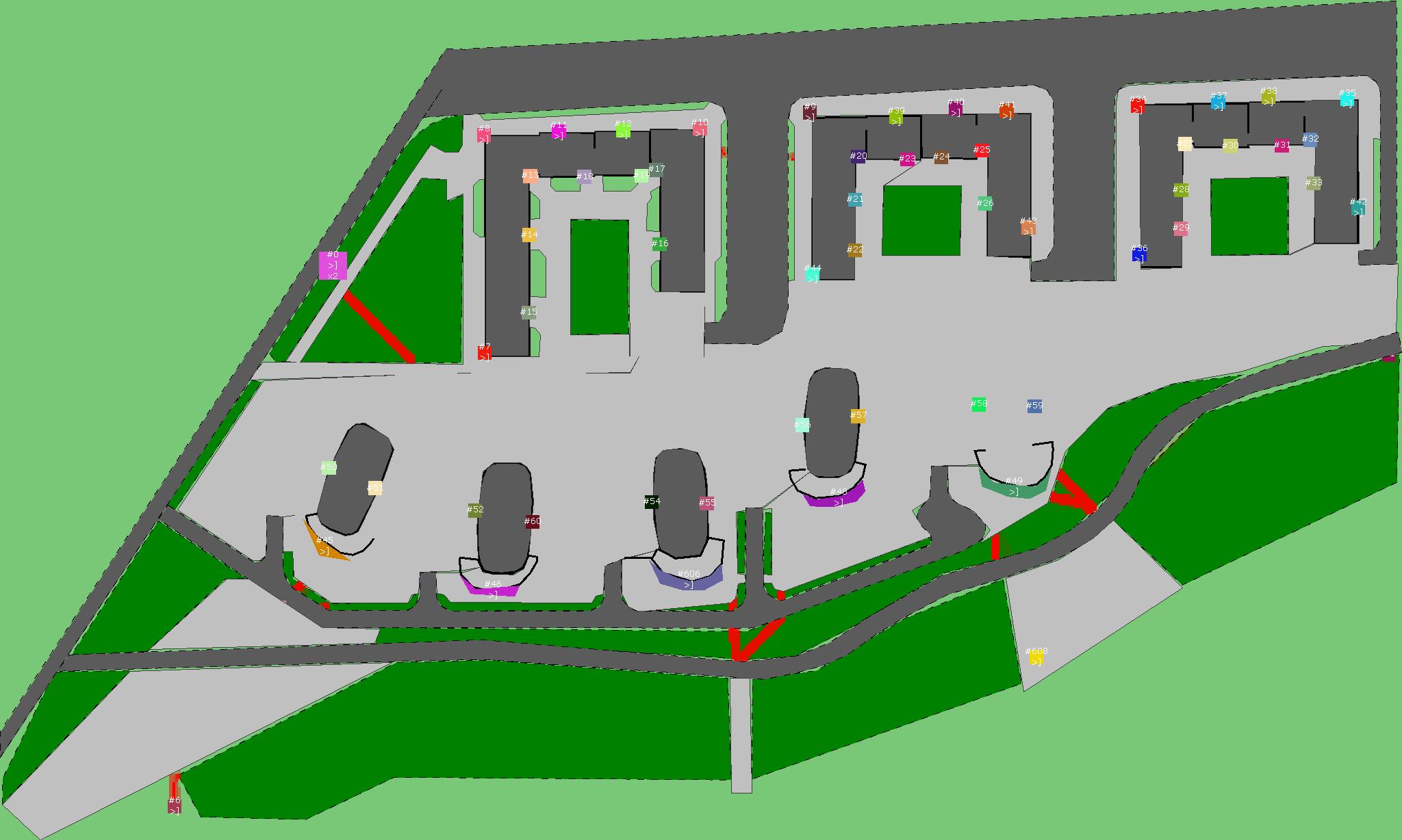 Красным цветом показаны места, где, вероятнее всего, появятся стихийные тропы..