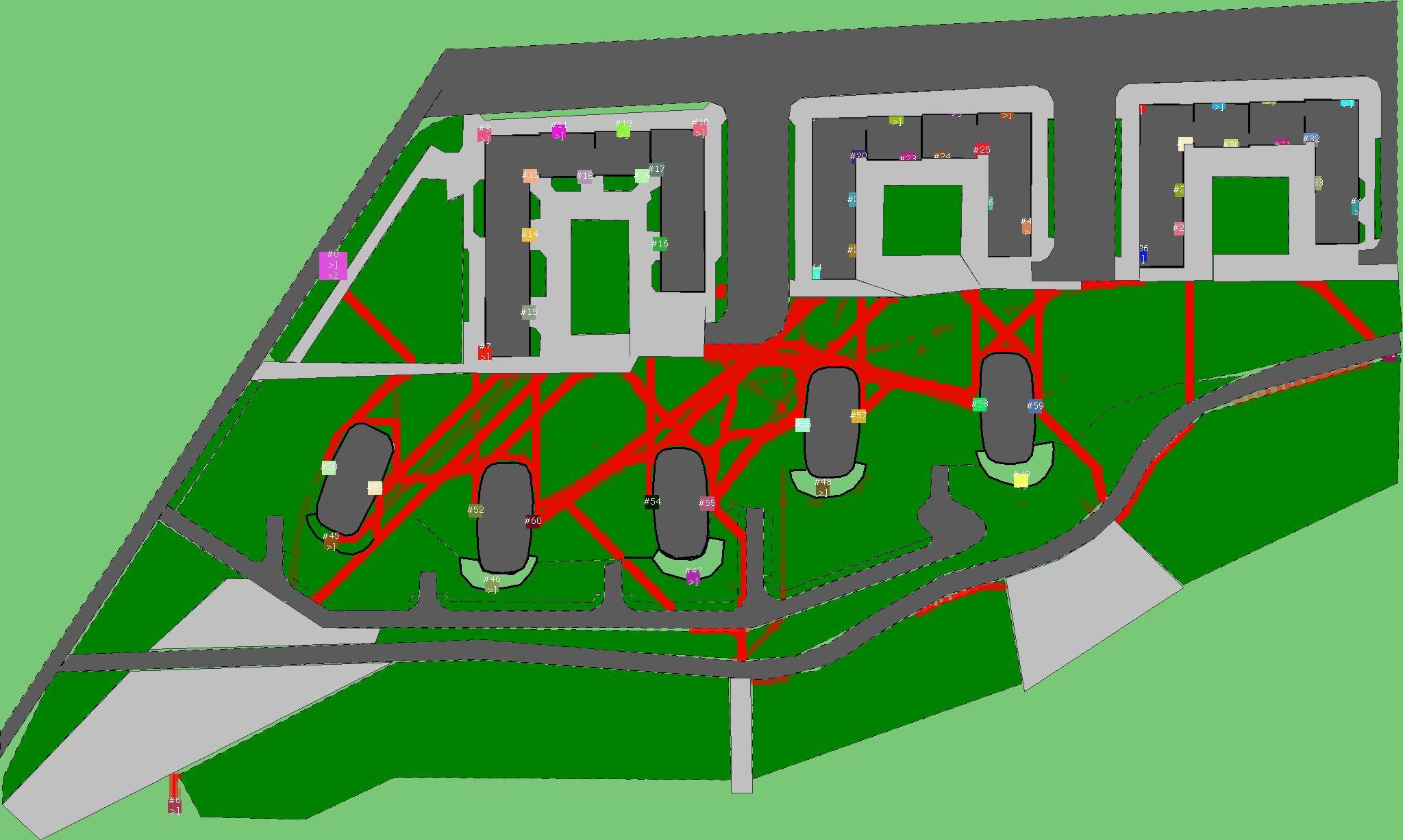Красным цветом показаны места, где, вероятнее всего, появятся стихийные тропы..