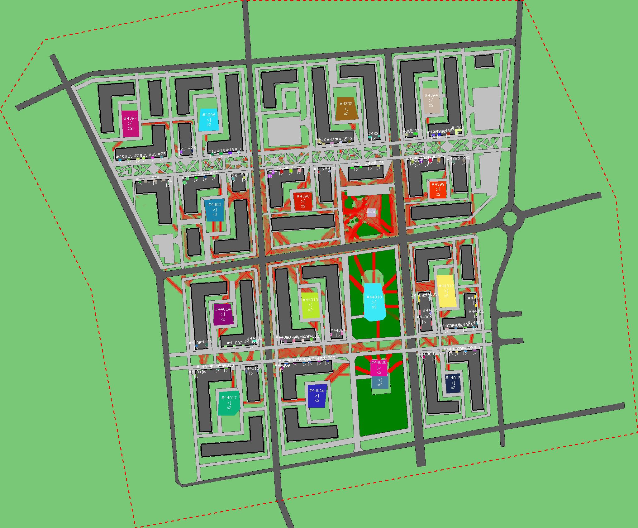 Красным цветом показаны места, где, вероятнее всего, появятся стихийные тропы..
