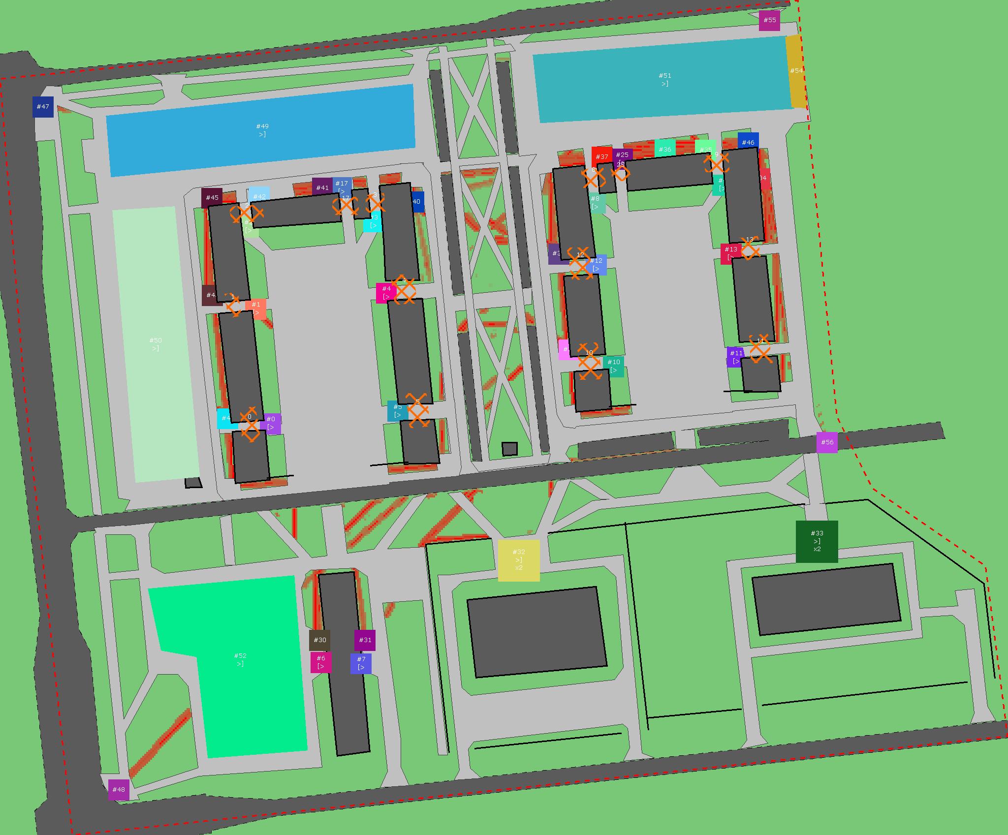 Красным цветом показаны места, где, вероятнее всего, появятся стихийные тропы..