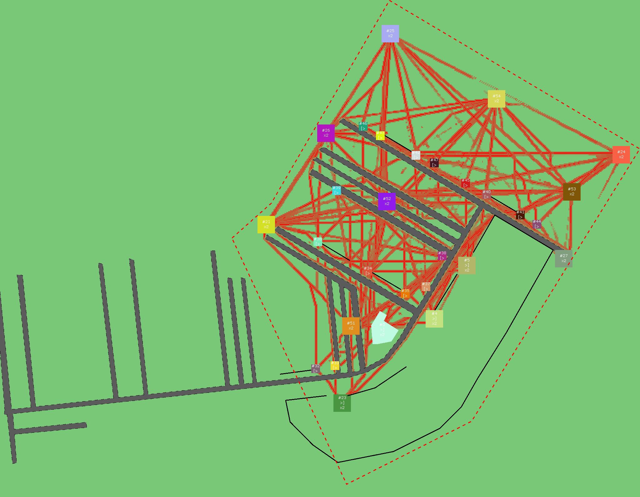 Красным цветом показаны места, где, вероятнее всего, появятся стихийные тропы..