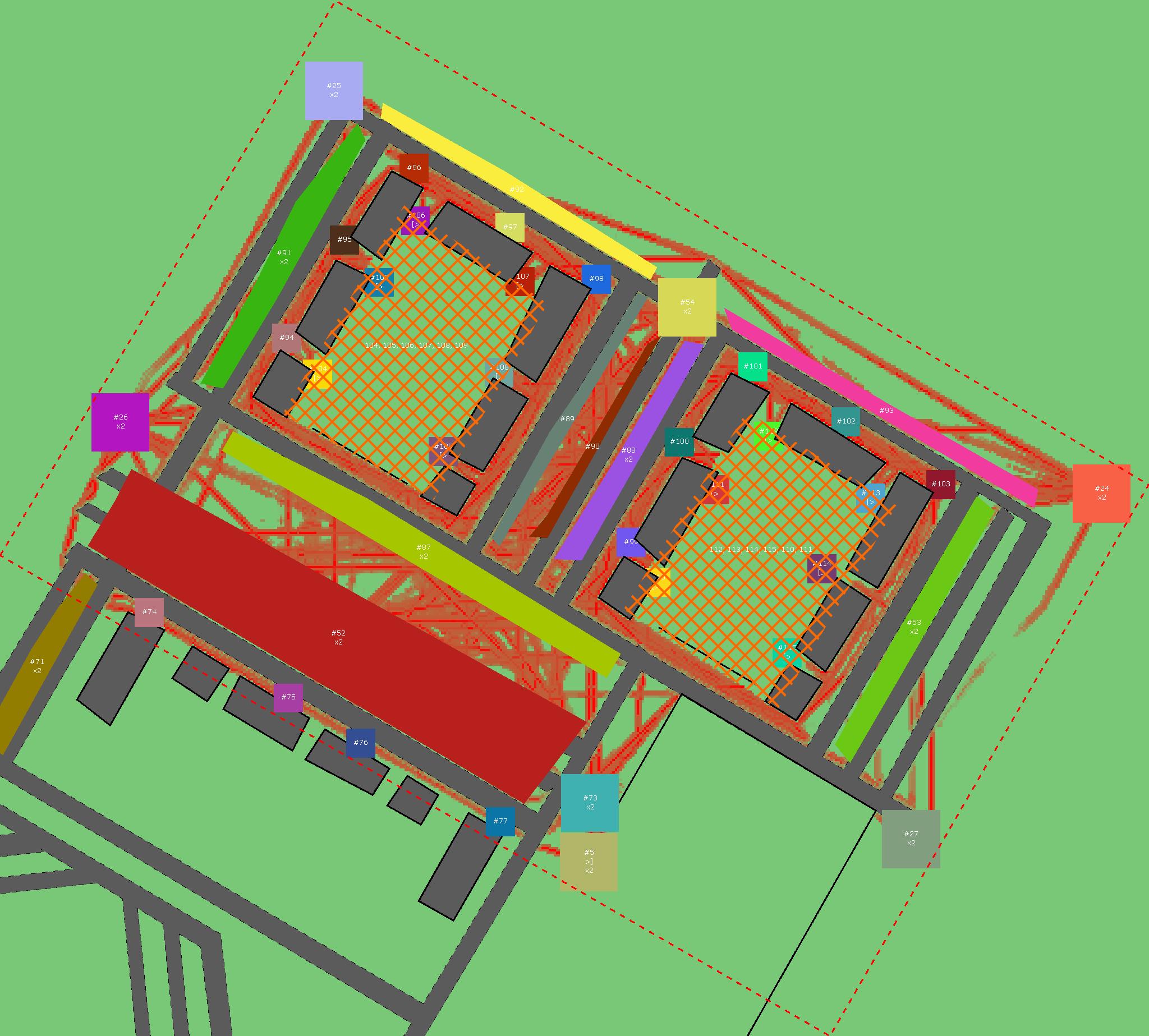 Красным цветом показаны места, где, вероятнее всего, появятся стихийные тропы..
