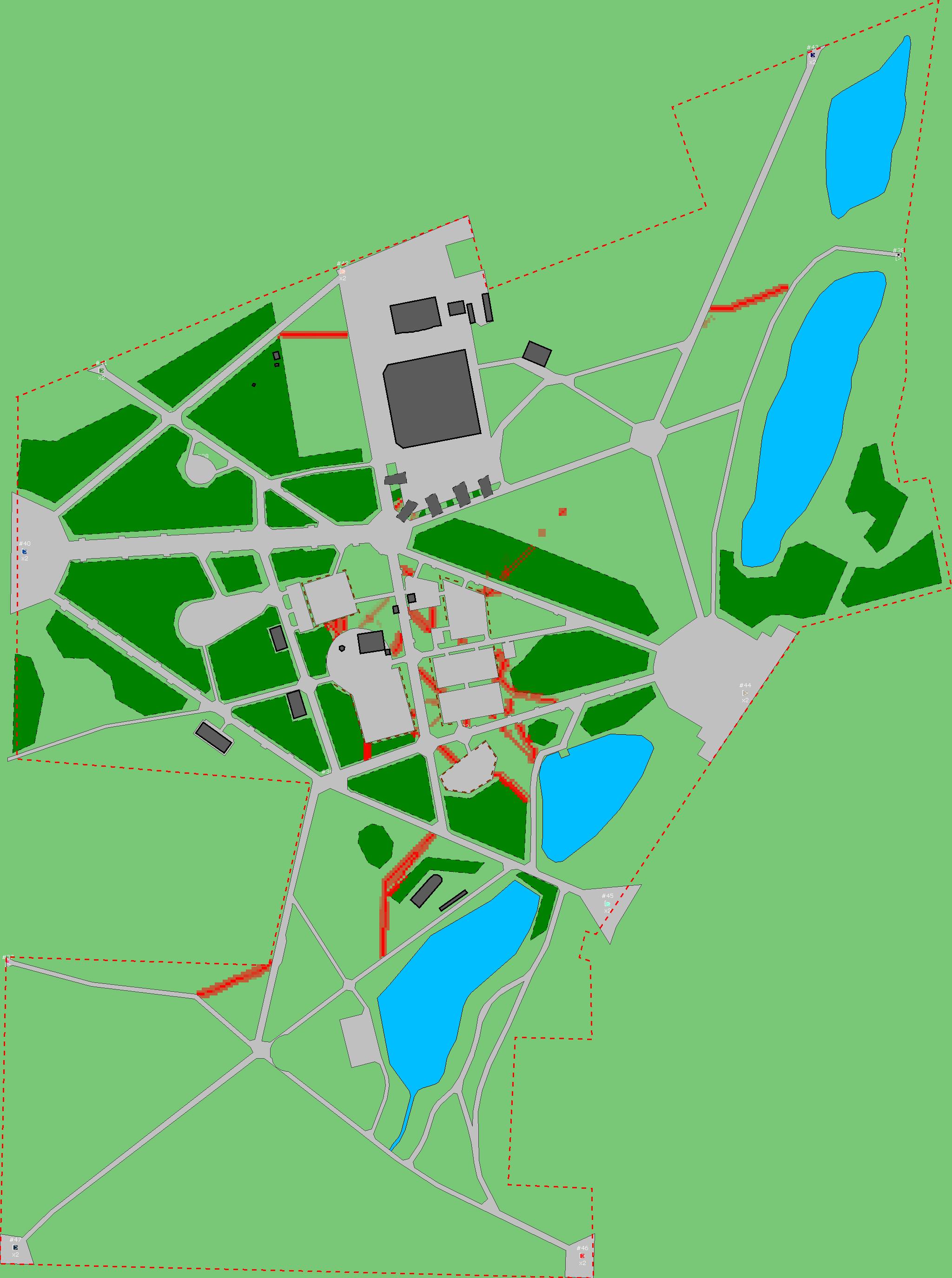 Красным цветом показаны места, где, вероятнее всего, появятся стихийные тропы..