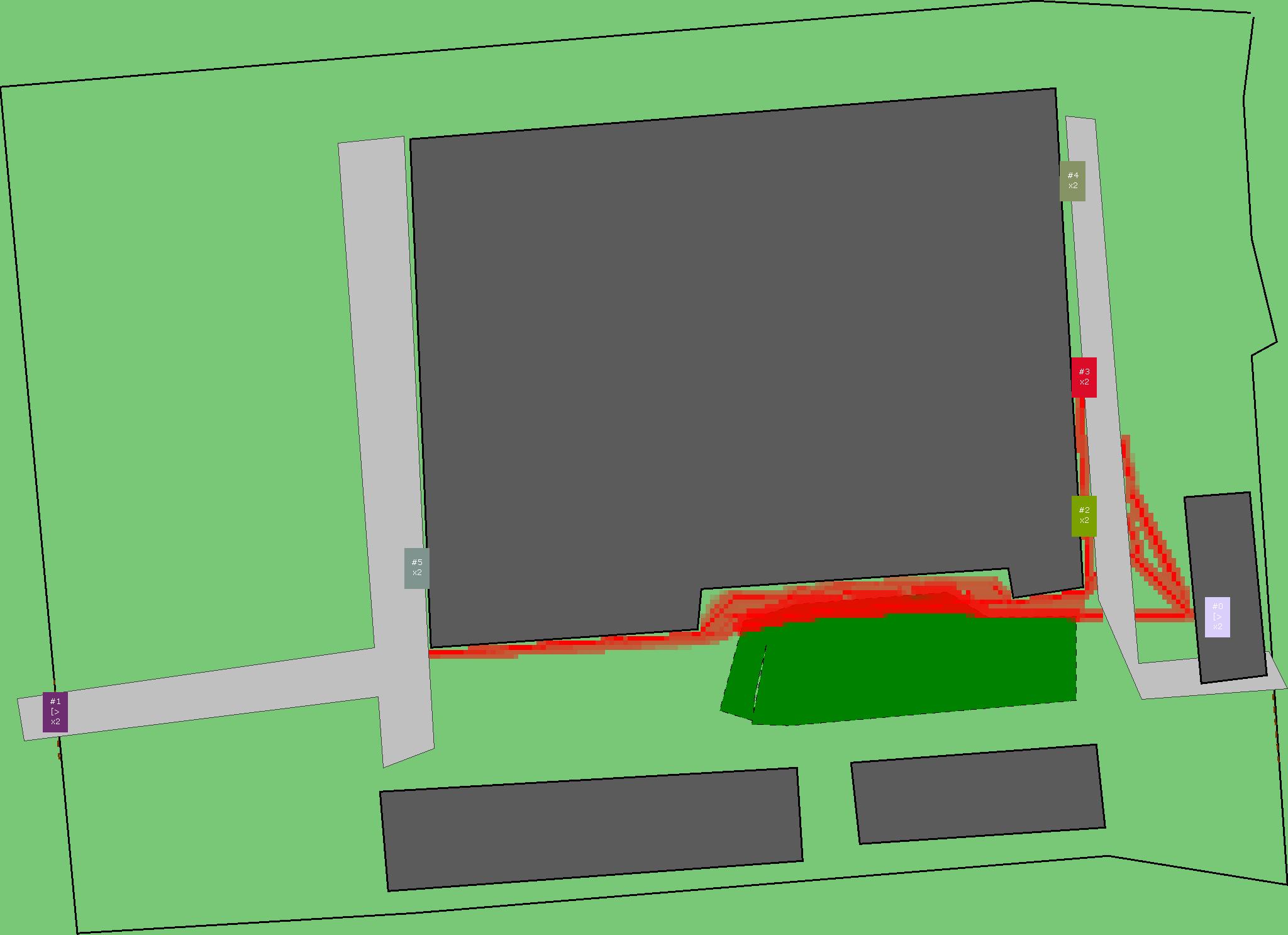 Красным цветом показаны места, где, вероятнее всего, появятся стихийные тропы..