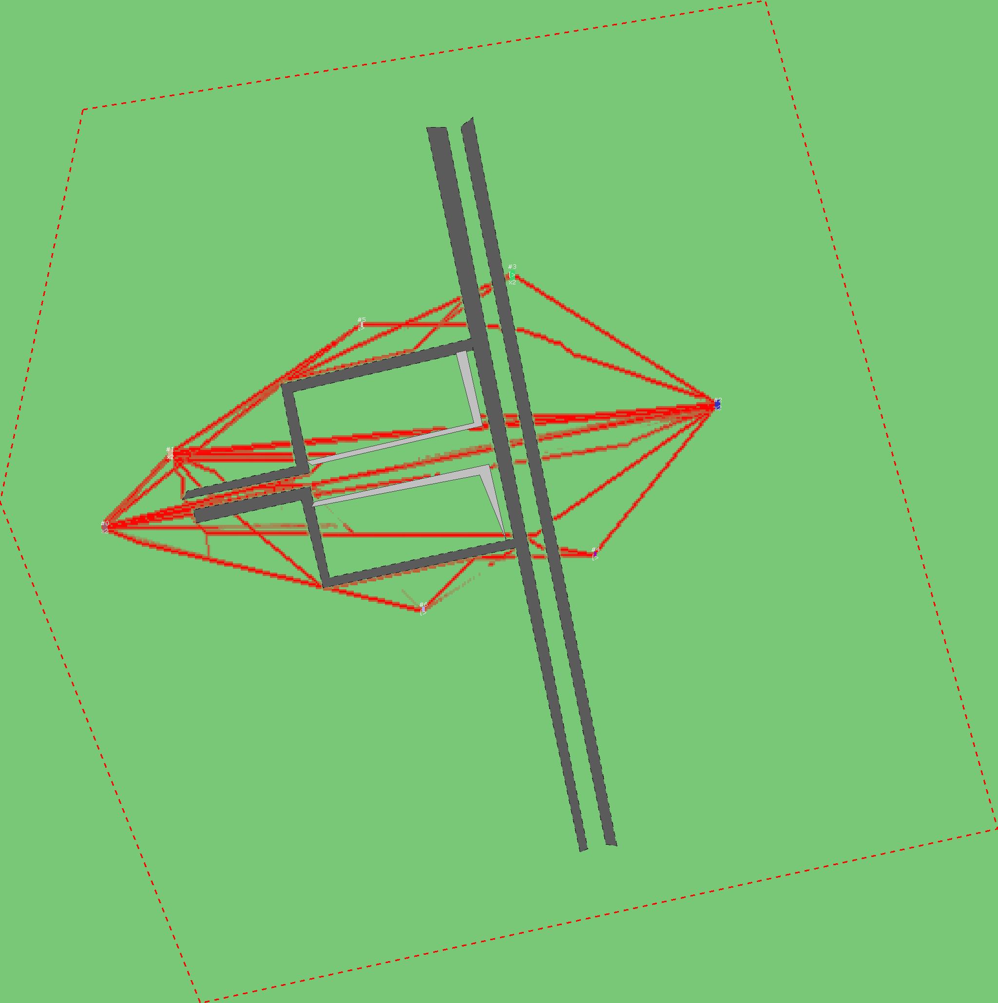 Красным цветом показаны места, где, вероятнее всего, появятся стихийные тропы..