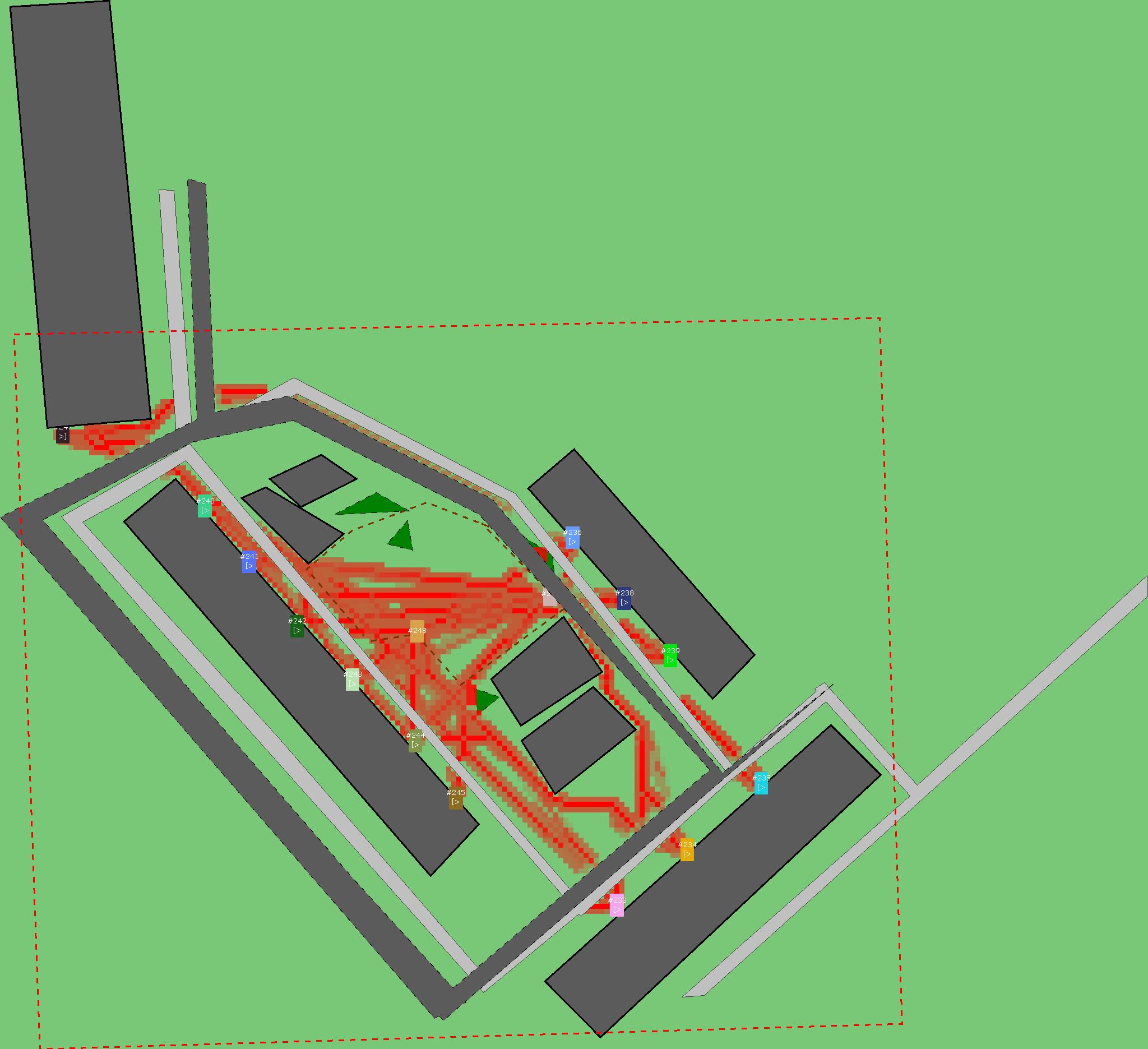 Красным цветом показаны места, где, вероятнее всего, появятся стихийные тропы..